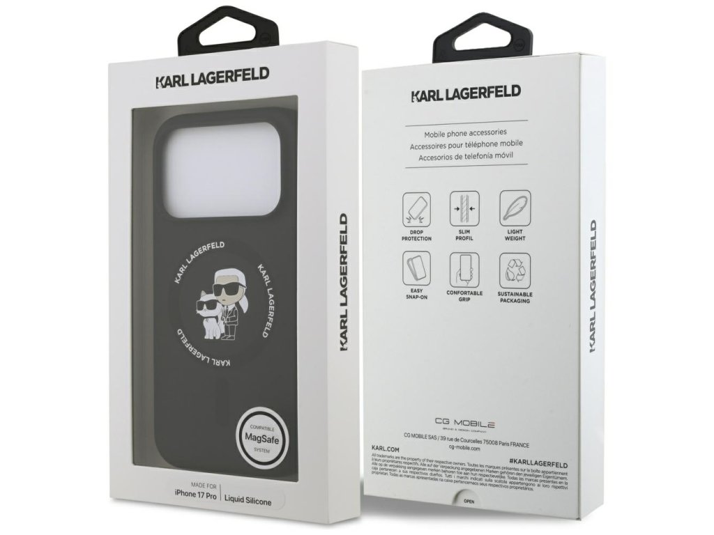 Karl Lagerfeld – Silicone Ring MagSafe obal na iPhone 17 Pro – čierny Karl & Choupette