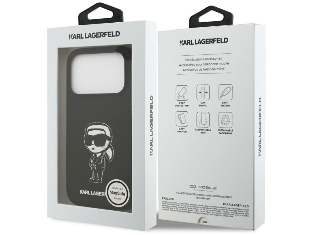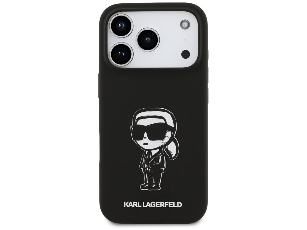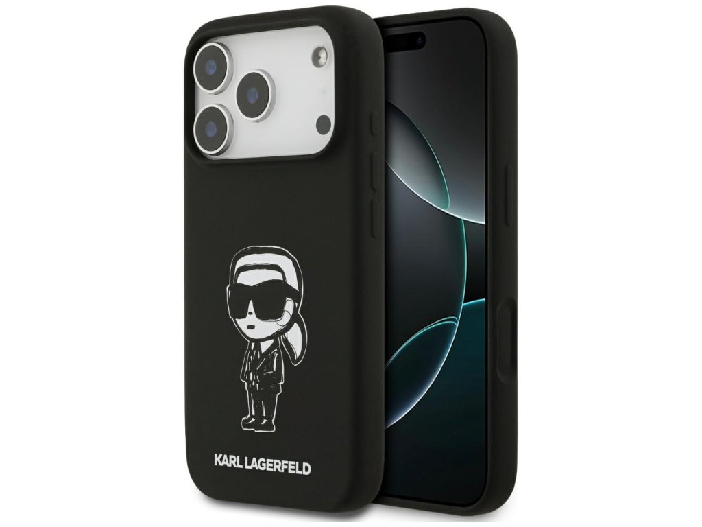 Karl Lagerfeld – Silicone Sketch & Logo obal na iPhone 17 Pro – čierny Karl