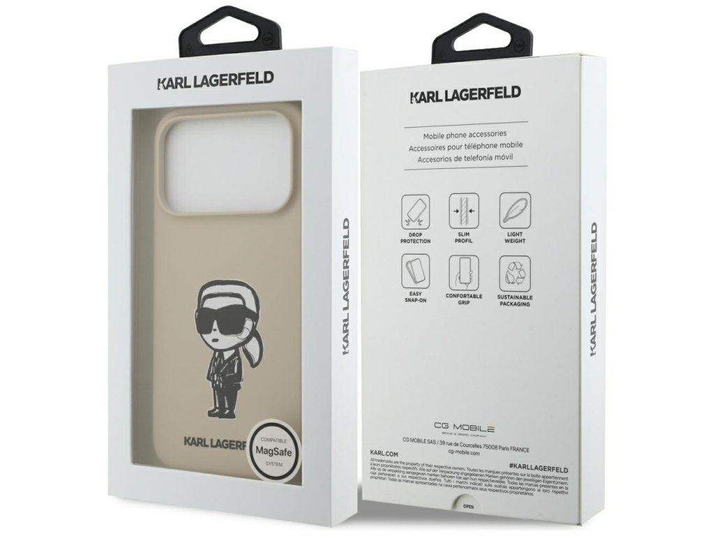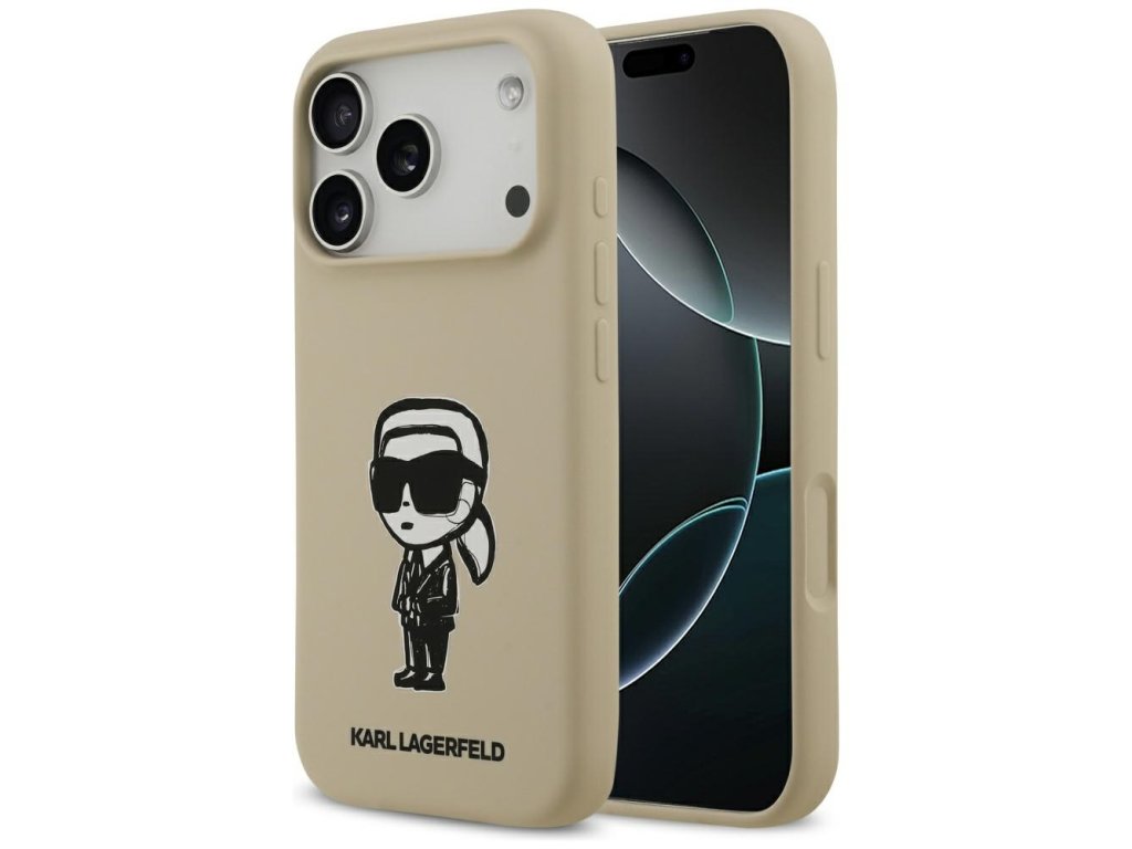 Karl Lagerfeld – Silicone Sketch & Logo obal na iPhone 17 Pro – hnedý Karl