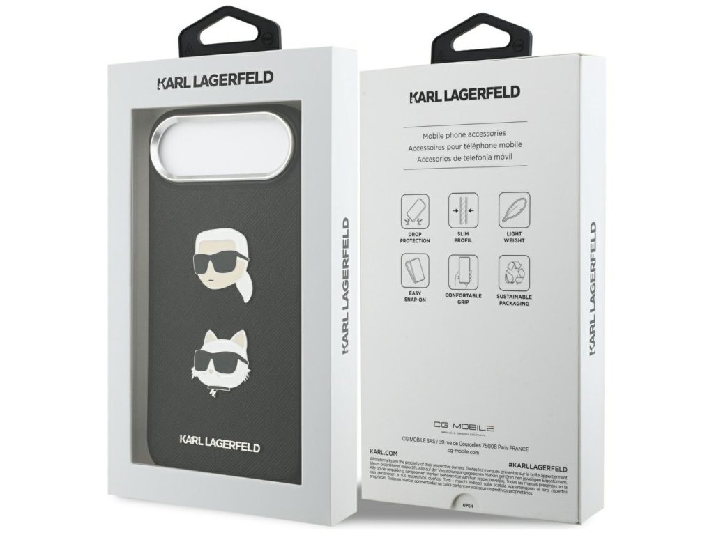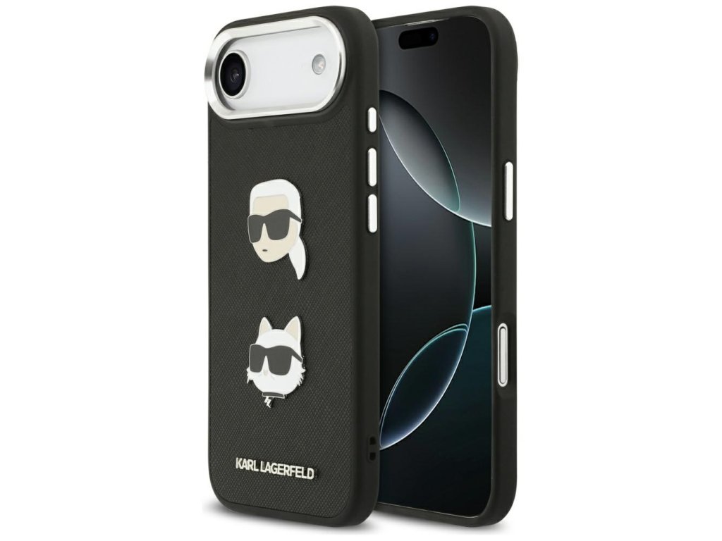 Karl Lagerfeld - FW Grained Karl & Choupette Heads Pins & Logo puzdro pre iPhone 17 Air - čierne