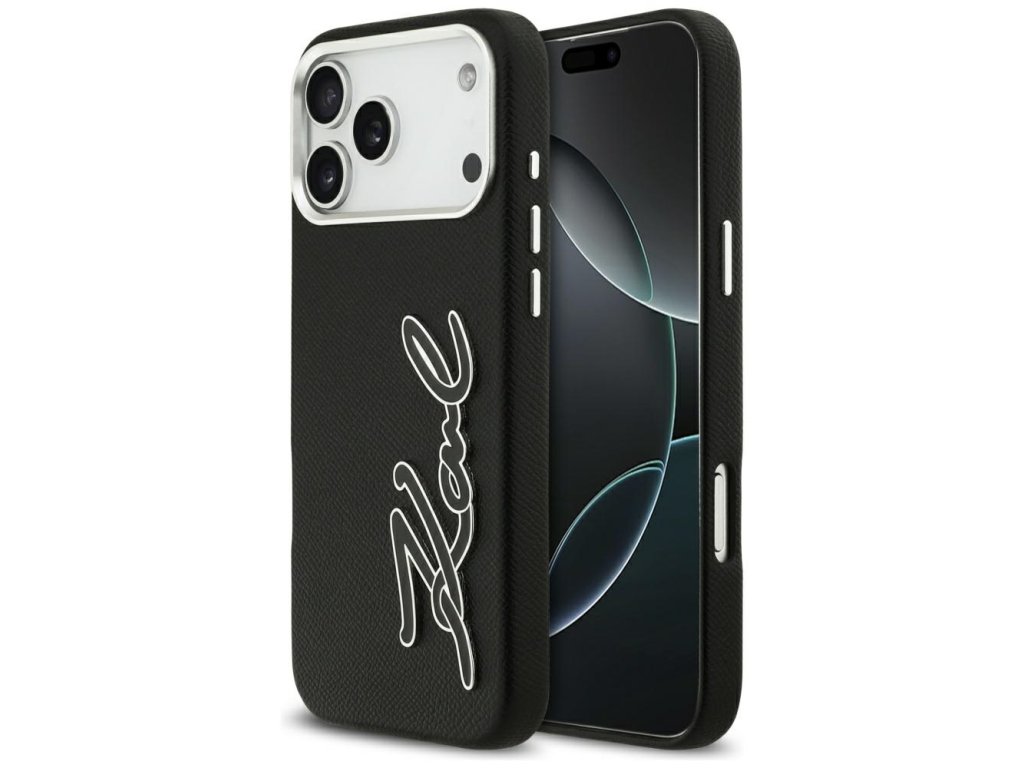 Karl Lagerfeld - Hardcase FW Grained with Signature Logo puzdro pre iPhone 17 Pro Max - čierne