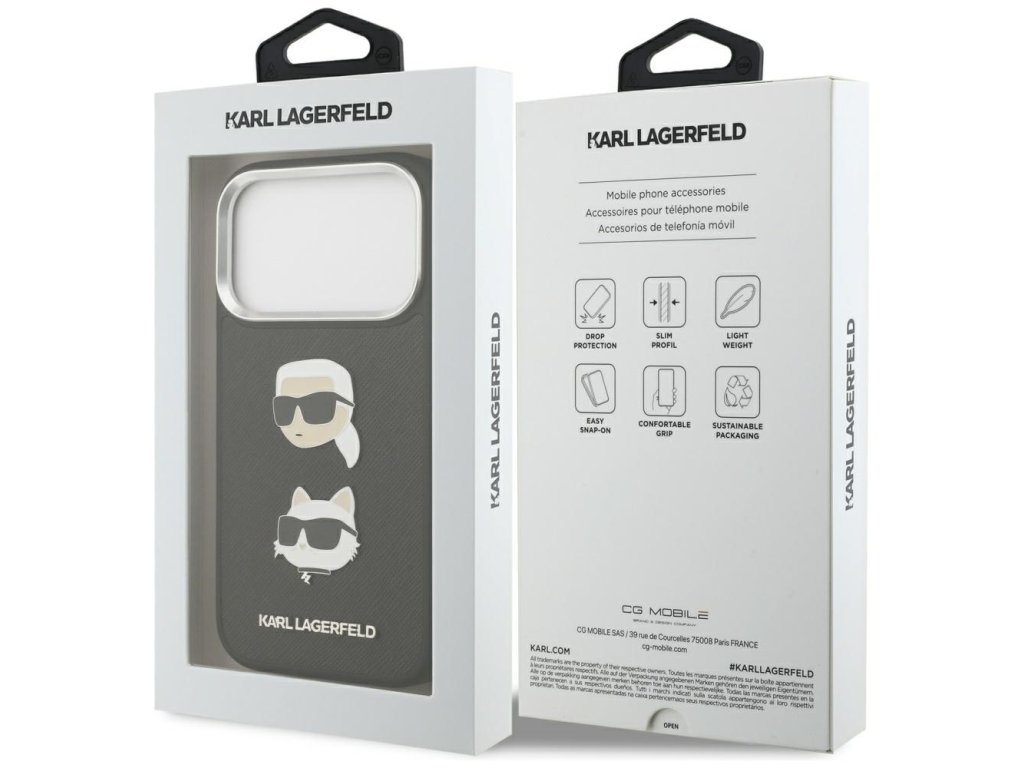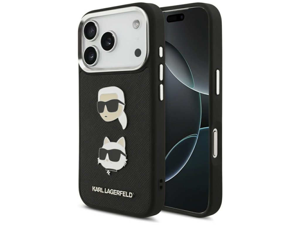 Karl Lagerfeld - Hardcase Grained K&C Heads Pins and Logo (KLHCP17LPSFDHPOK) - iPhone 17 Pro - Black