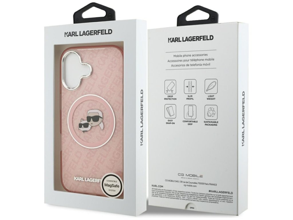 Karl Lagerfeld - IML Glitter K&C Heads Logo MagSafe (KLHMP17SHMKBKCHOP) - iPhone 17 - Pink