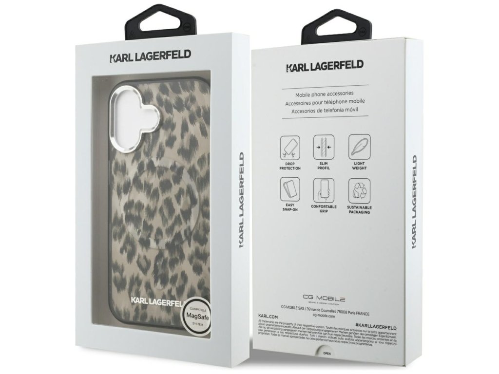 Karl Lagerfeld - IML Leopard Pattern MagSafe obal na iPhone 16 - hnedý
