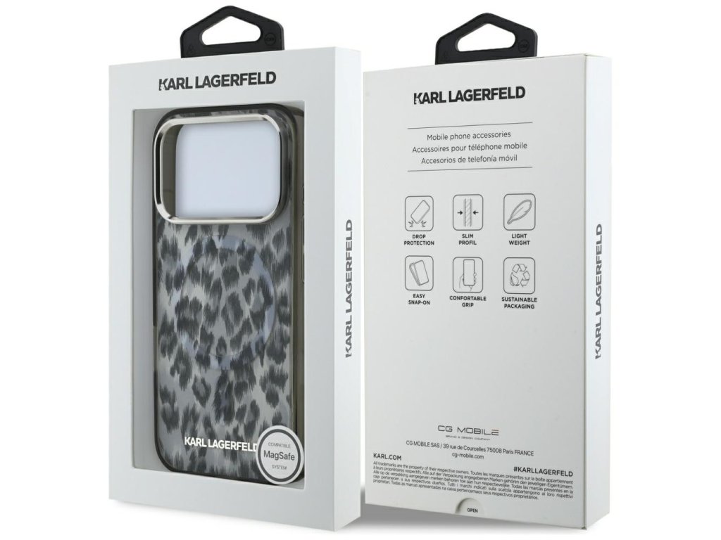 Karl Lagerfeld - IML Leopard Pattern MagSafe puzdro pre iPhone 17 Pro - čierne