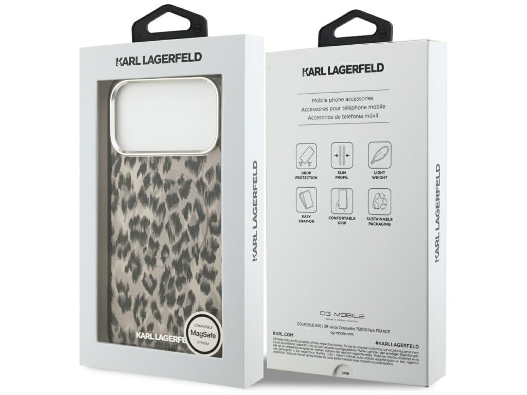 Prsteň MagSafe uľahčuje bezdrôtové nabíjanie a robí, že puzdro iPhone 17 Pro Max Karl Lagerfeld má moderný tvar, reprezentatívny pre naše dni plné technológií.