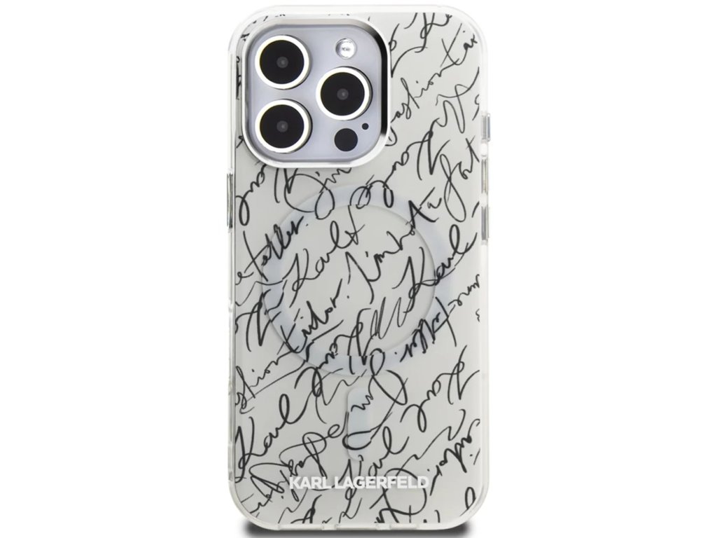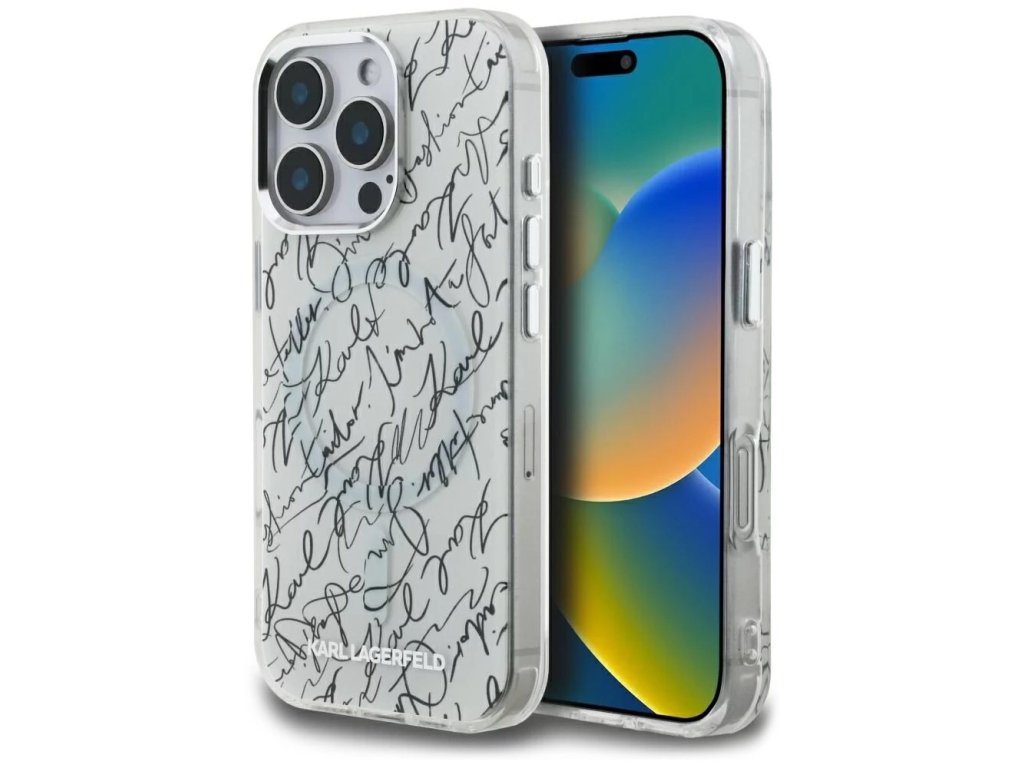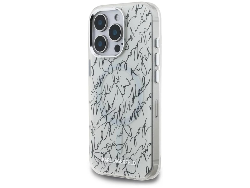Karl Lagerfeld - IML MagSafe Karl Script Pattern ochranný obal na iPhone 16 Pro Max – biela