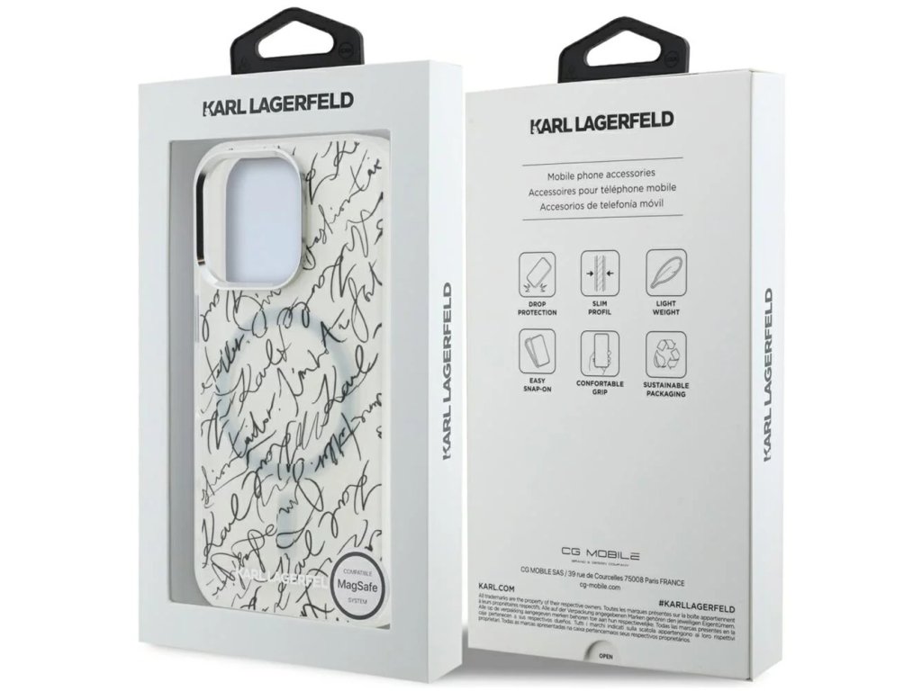 Krúžok MagSafe umožňuje bezdrôtové nabíjanie a robí z puzdra iPhone 16 Pro Max Karl Lagerfeld moderný, reprezentatívny prvok našich technologicky naplnených čias.