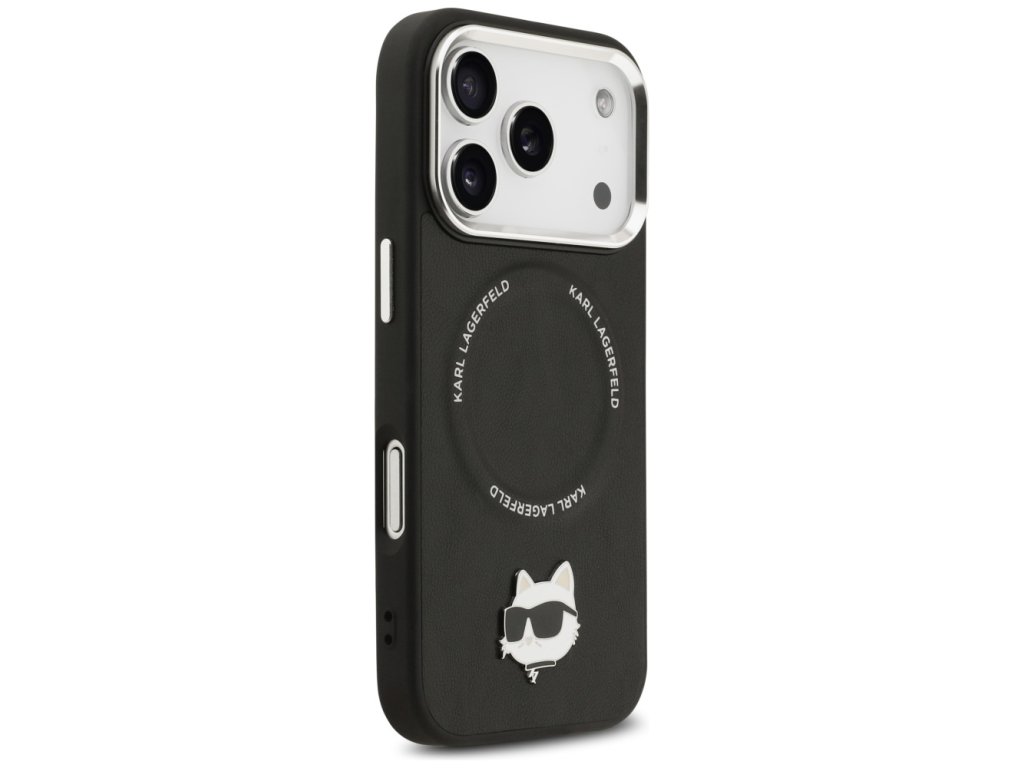 Karl Lagerfeld - Leather Choupette Pin MagSafe (KLHMP17LPSMLRCHK) - iPhone 17 Pro - Black