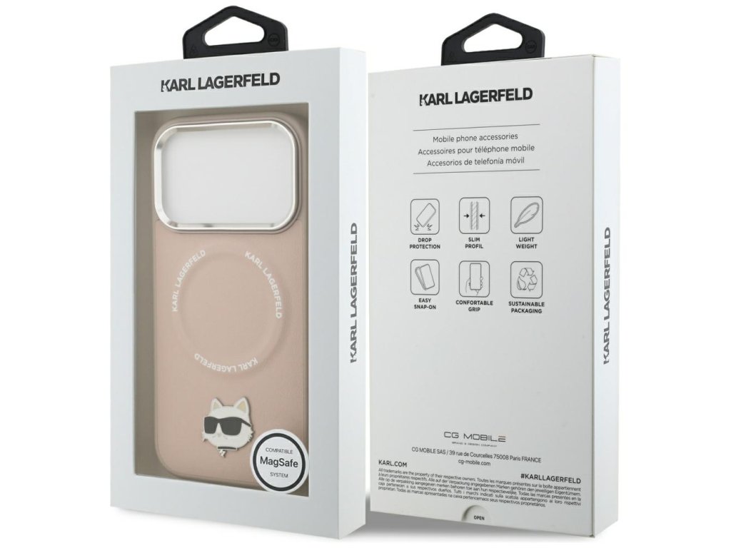Karl Lagerfeld - Leather Choupette Pin MagSafe (KLHMP17LPSMLRCHP) - iPhone 17 Pro - Pink