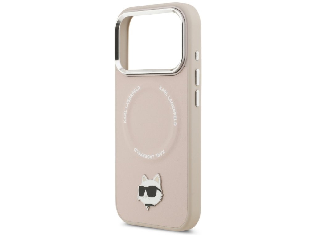 Karl Lagerfeld - Leather Choupette Pin MagSafe (KLHMP17XPSMLRCHP) - iPhone 17 Pro Max - Pink