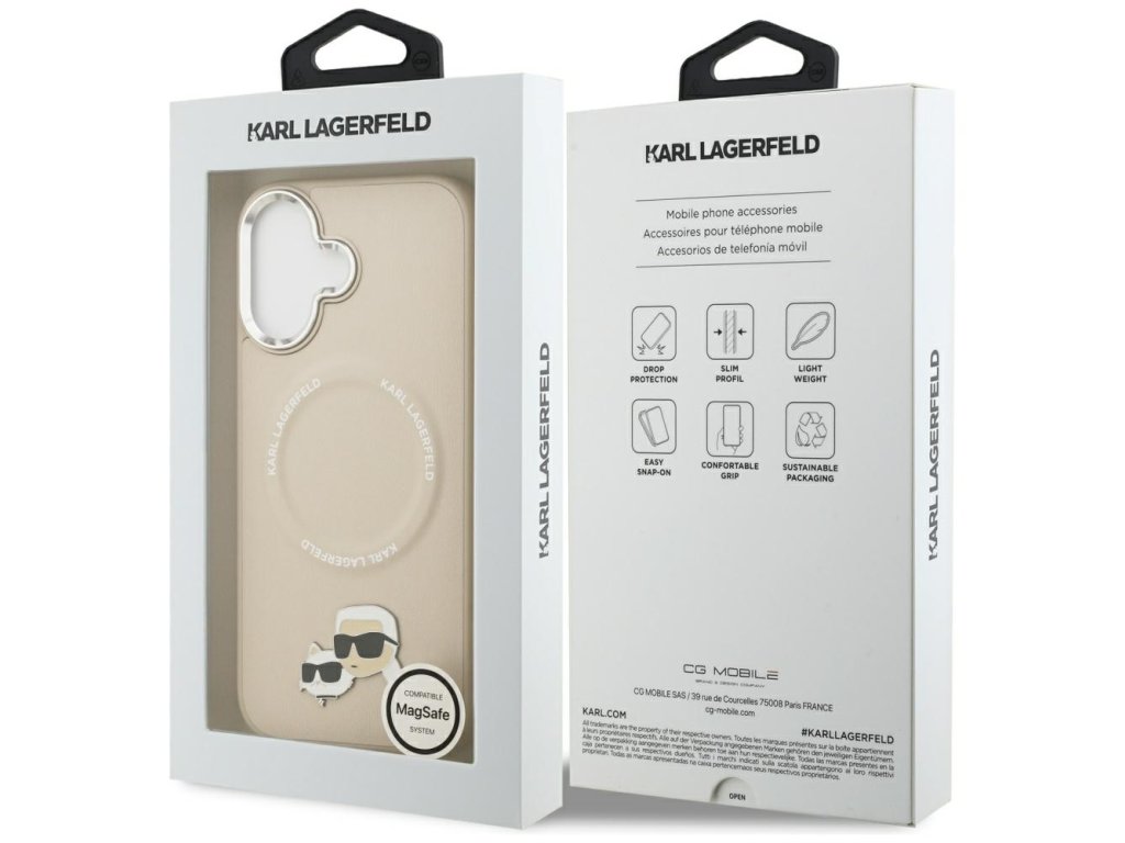 Karl Lagerfeld - Leather K&C Pins MagSafe (KLHMP17SPSMLRKCE) - iPhone 17 - Beige