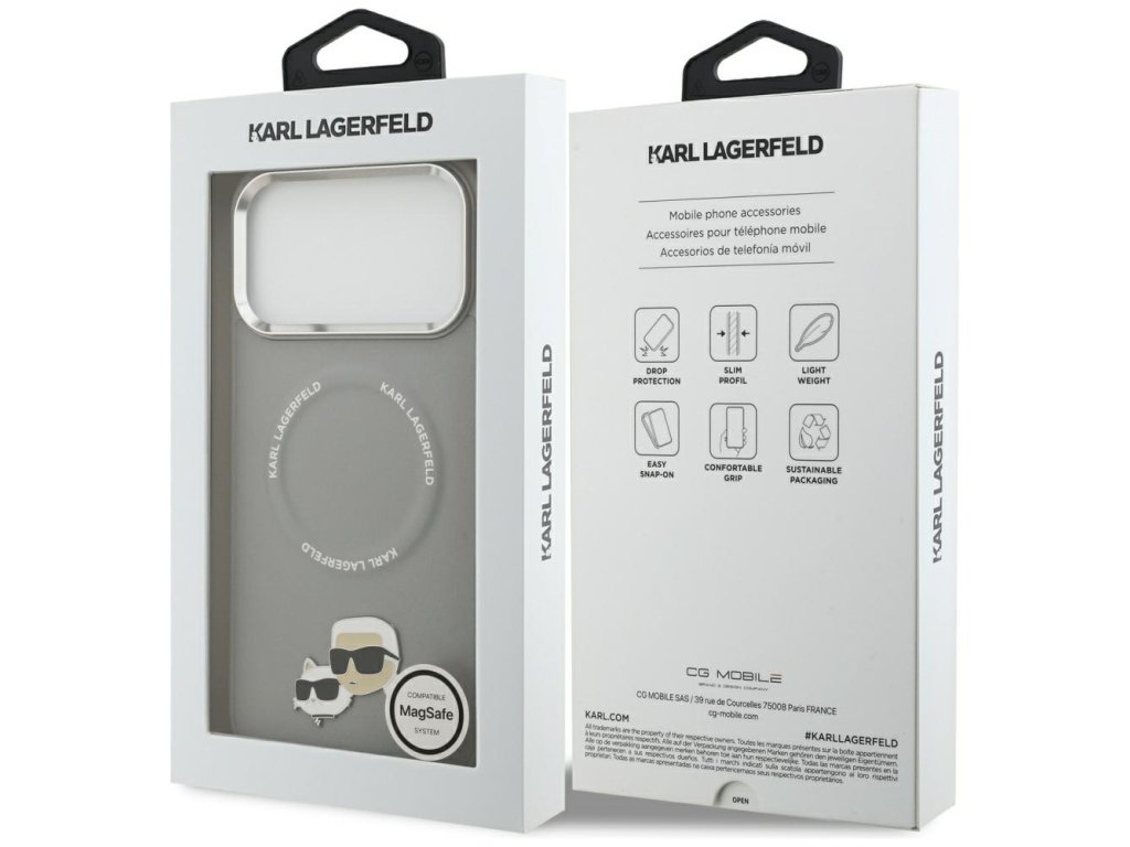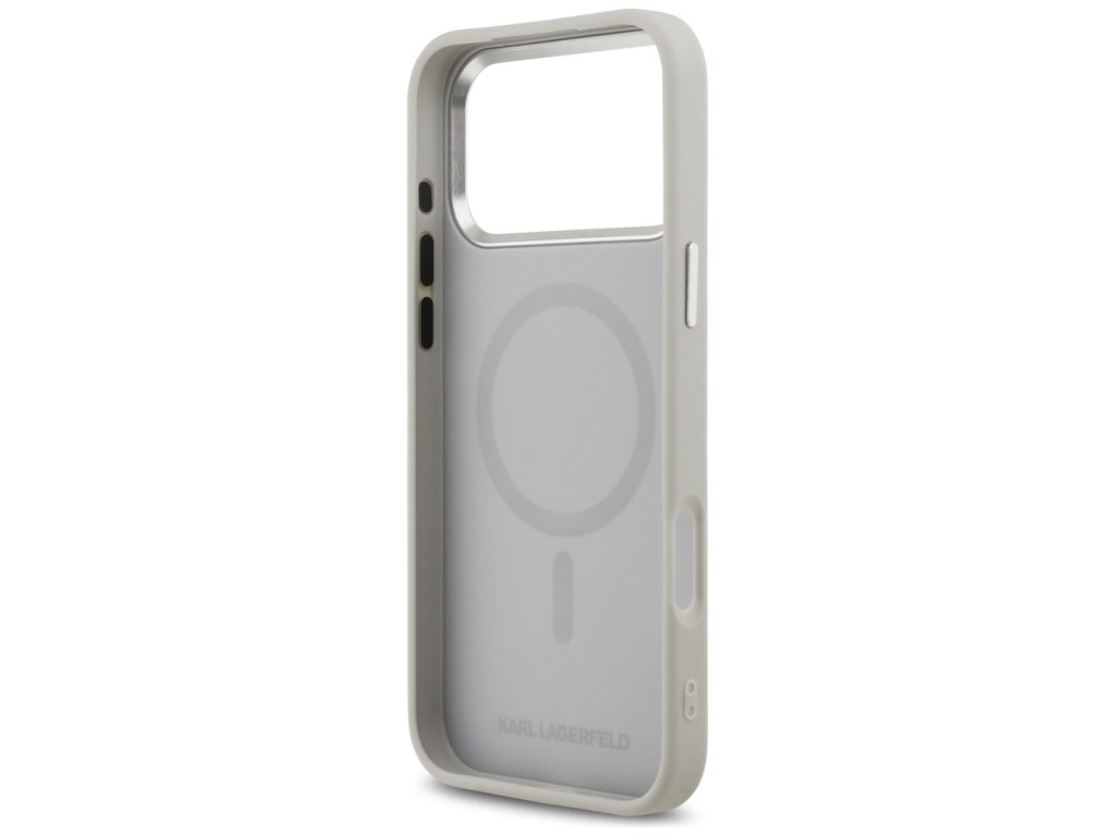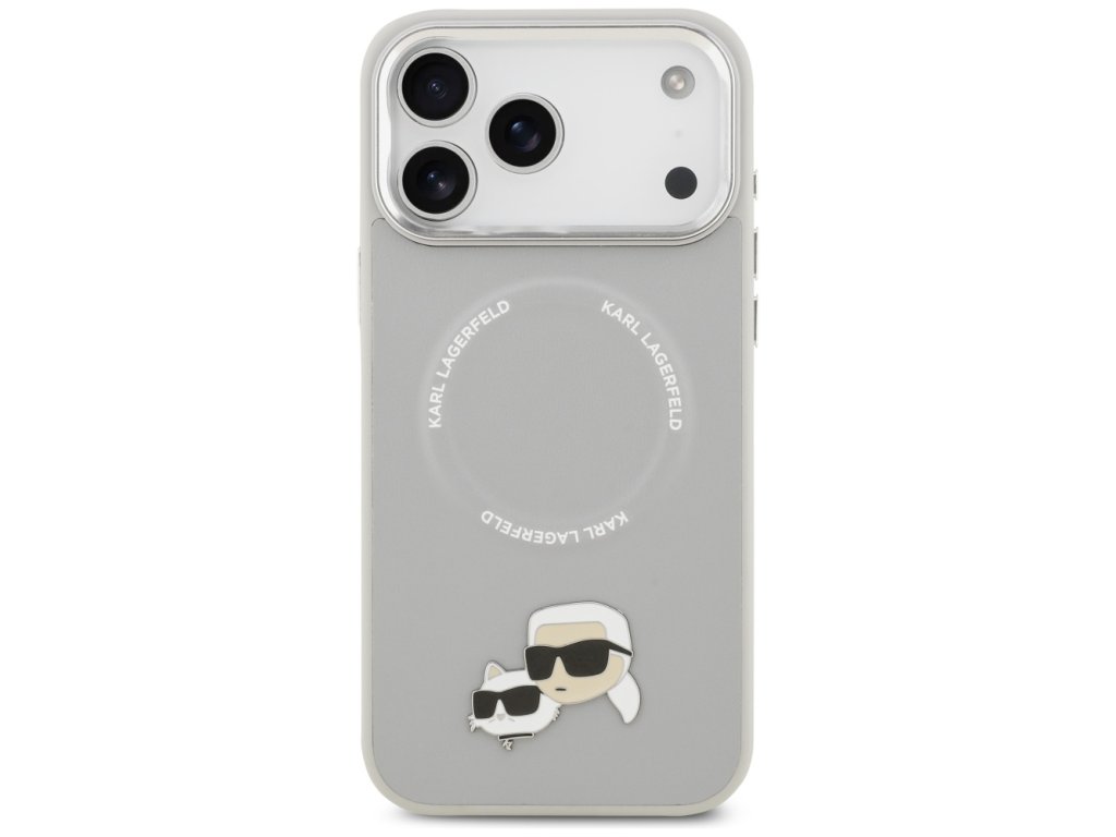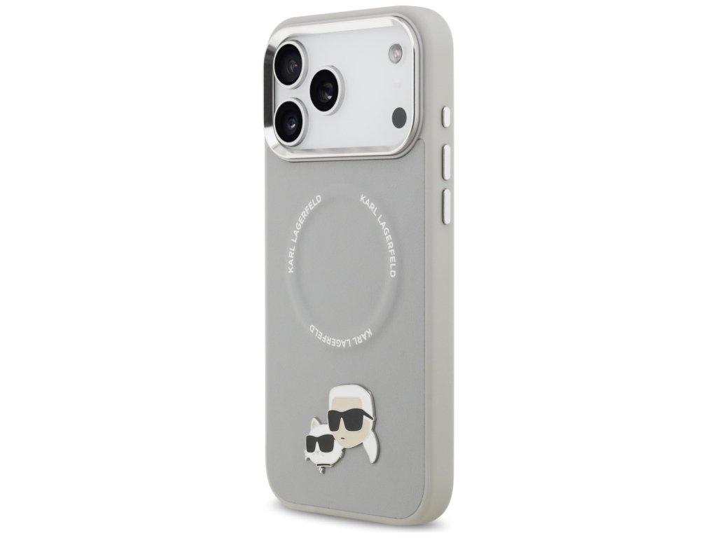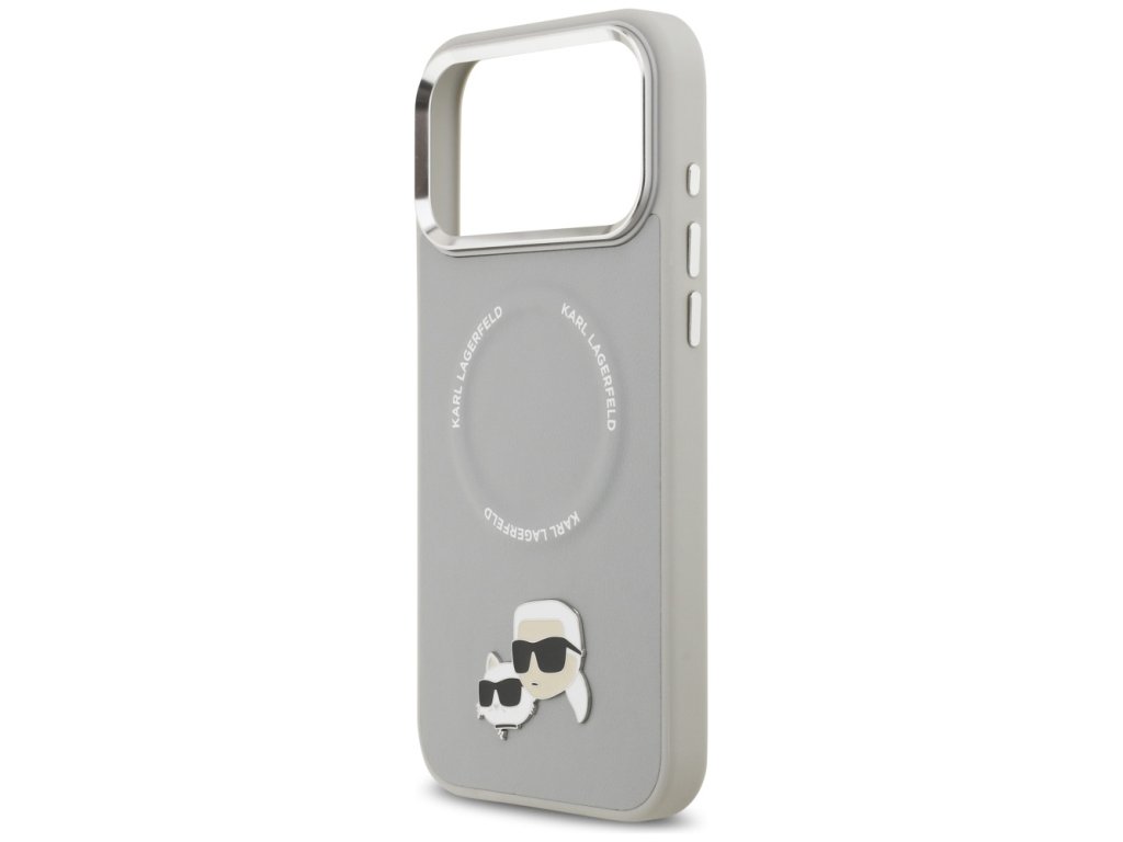 Karl Lagerfeld - Leather Karl & Choupette Pins MagSafe (KLHMP17LPSMLRKCG) - iPhone 17 Pro - Gray