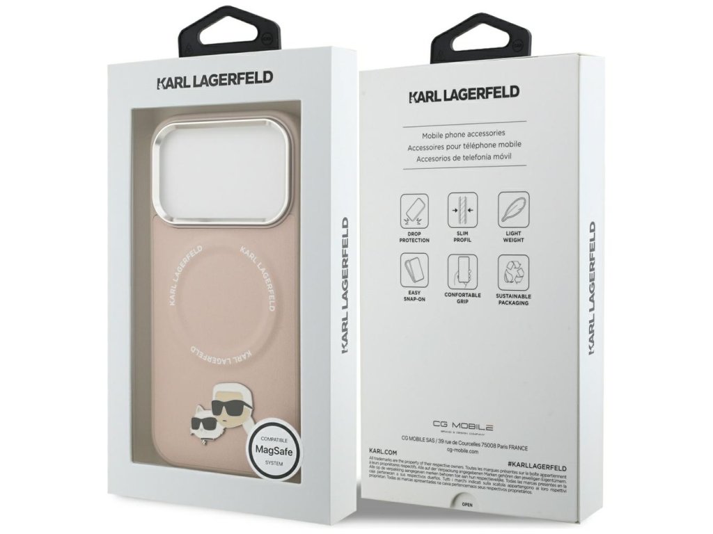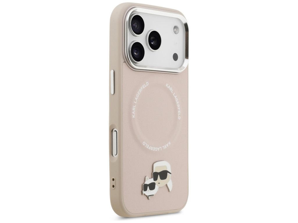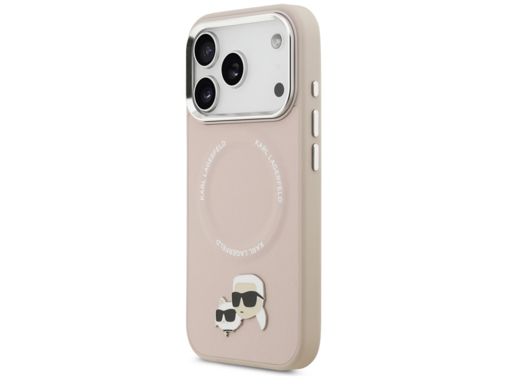 Karl Lagerfeld - Leather Karl & Choupette Pins MagSafe (KLHMP17LPSMLRKCP) - iPhone 17 Pro - Pink