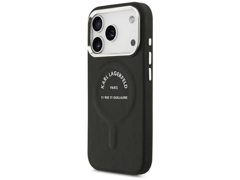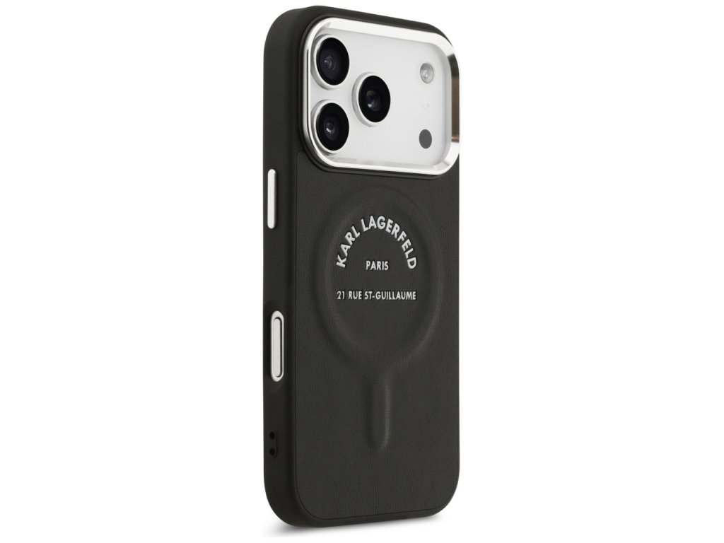 Karl Lagerfeld - Leather Karl RSG Logo MagSafe kožený kryt s MagSafe pre iPhone 17 Pro – čierny