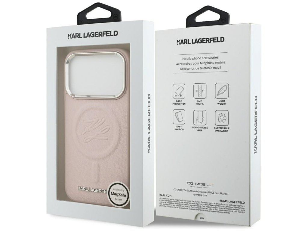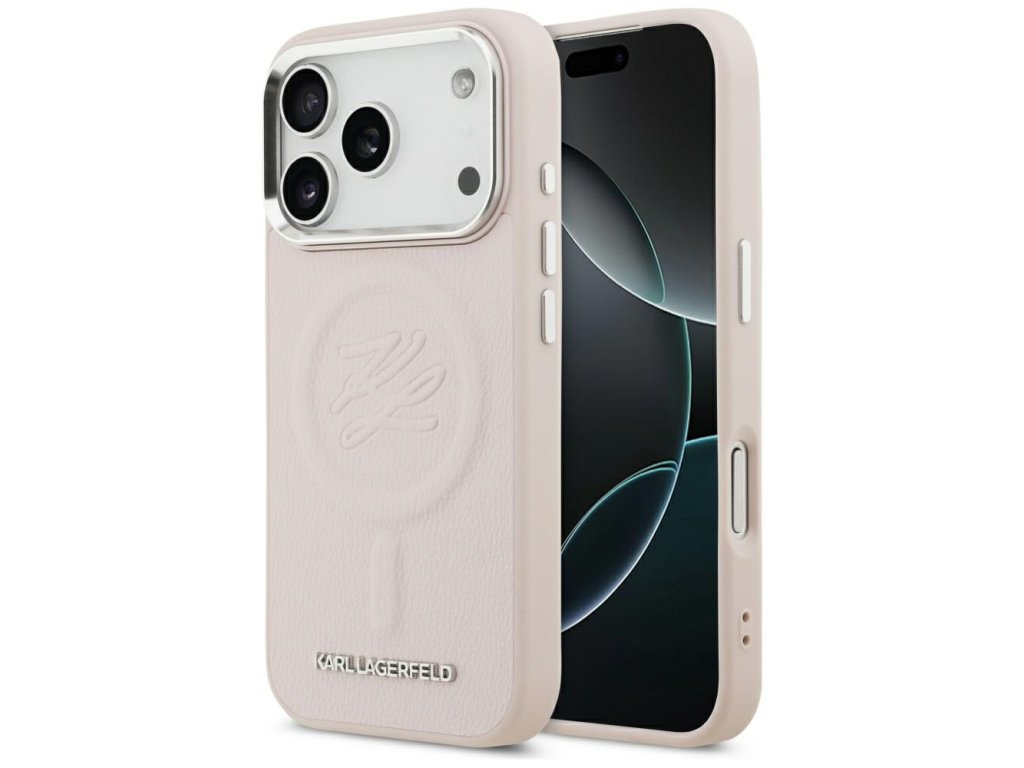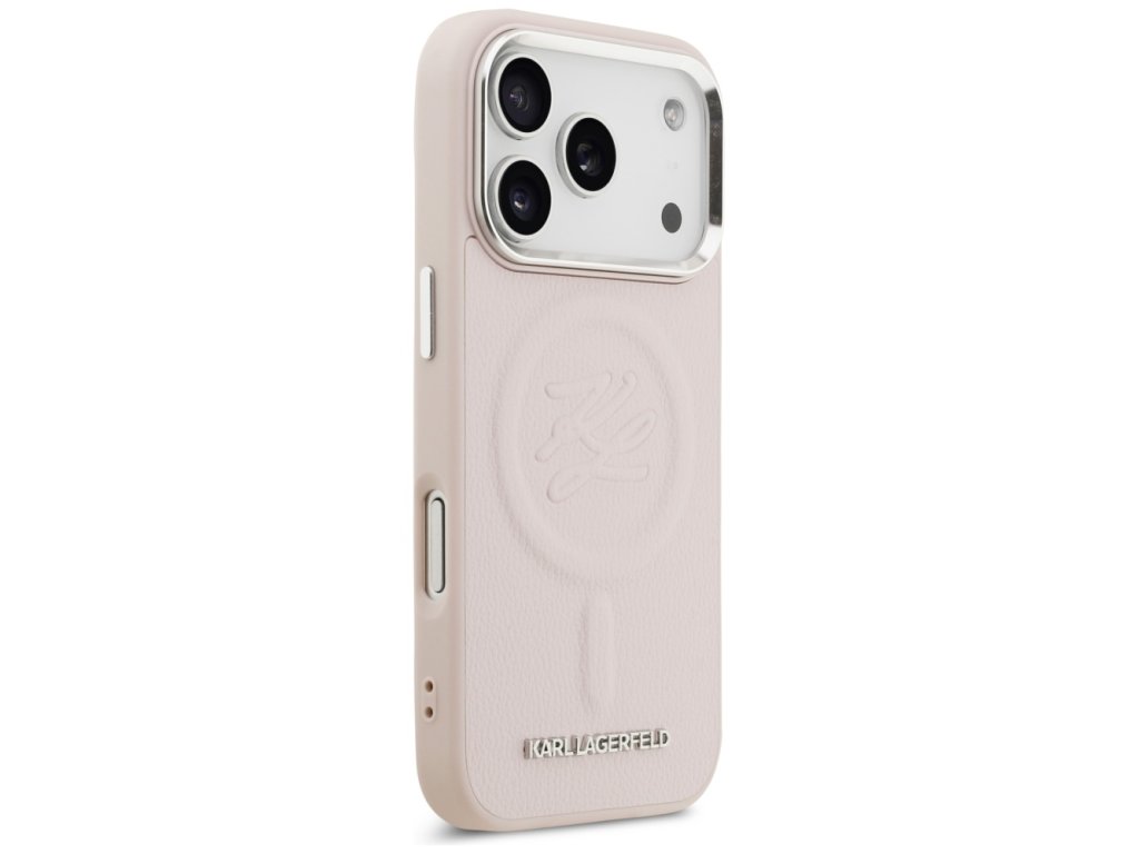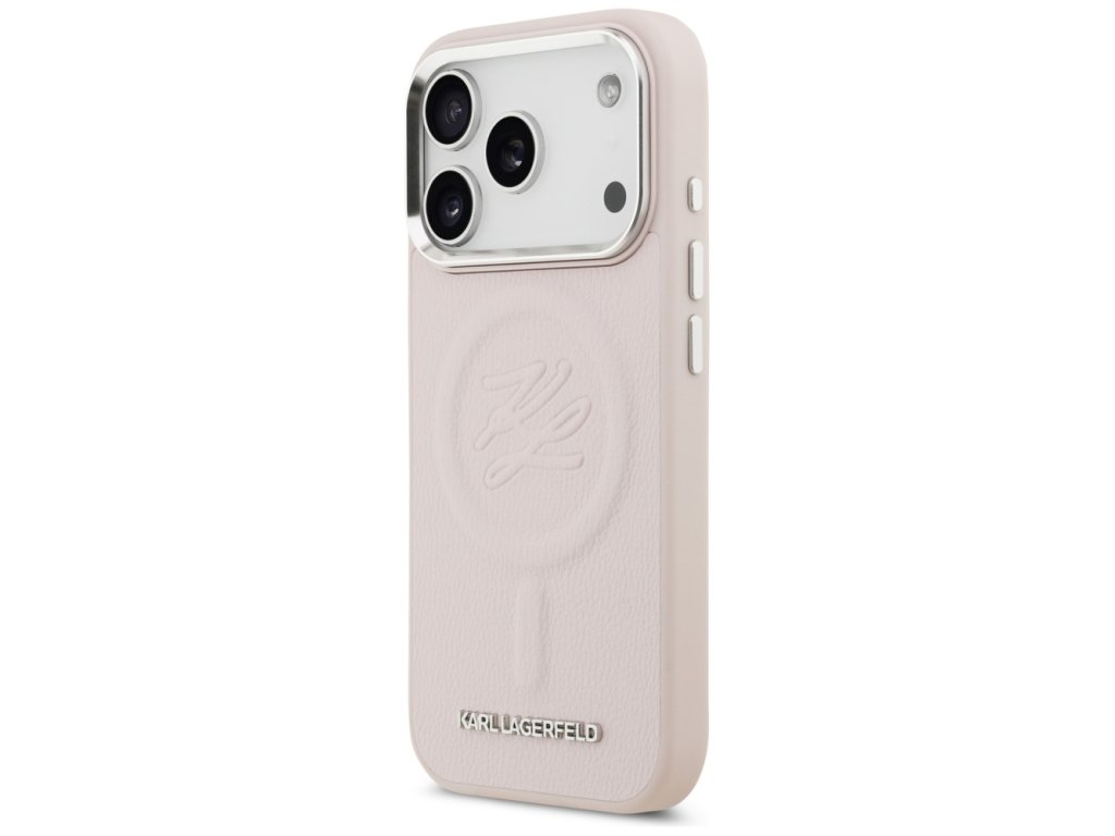 Karl Lagerfeld - Leather with Initial & Metal Logo MagSafe (KLHMP17XPGFKLRDP) - iPhone 17 Pro Max - Pink