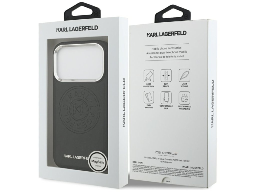 Karl Lagerfeld - Leather With Point & Metal Logo MagSafe (KLHMP17XPSKRPMK) - iPhone 17 Pro Max - Black