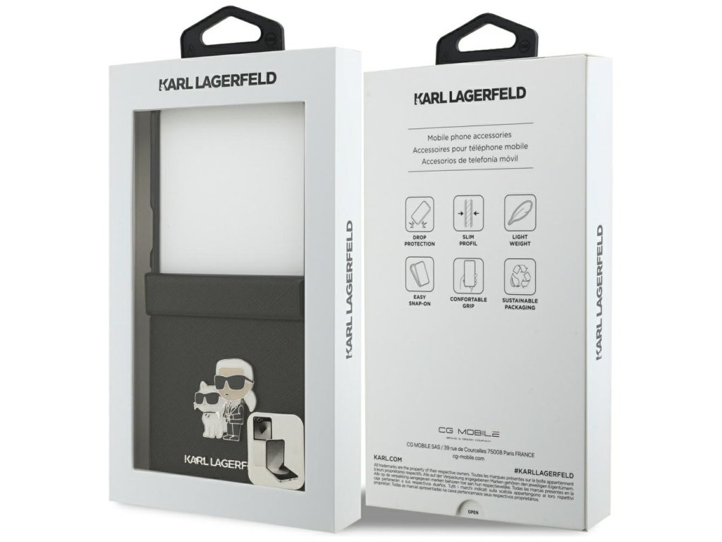 Karl Lagerfeld - Saffiano Karl&Choupette Pin (KLHCZF7SAPKCNPK) - Samsung Galaxy Z Flip7 - Black
