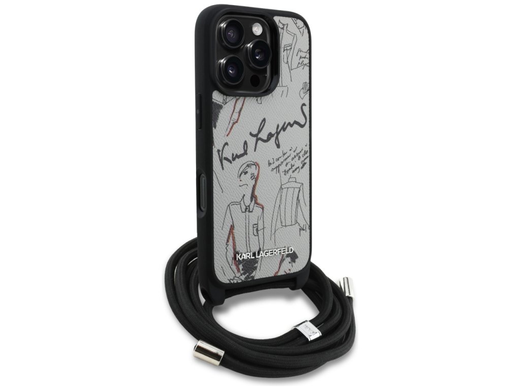 Karl Lagerfeld - Saffiano MagSafe Crossbody obal na iPhone 16 Pro Max - sivý
