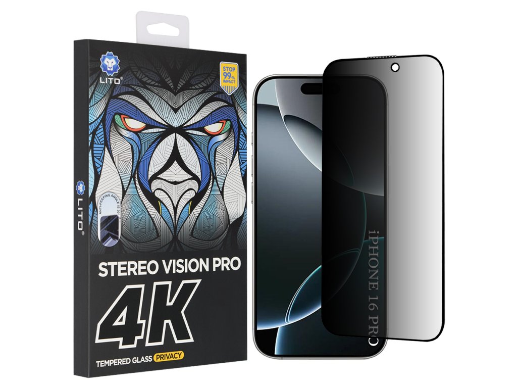 Lito – D+ Max 4K Privacy ochranné sklo na iPhone 17 / iPhone 16 Pro – čierne