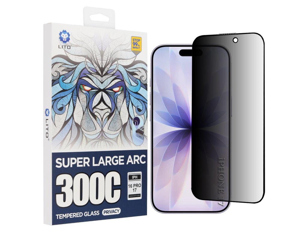 Lito – D+ Max Privacy 300C ochranné sklo na iPhone 17 / iPhone 16 Pro – čierne