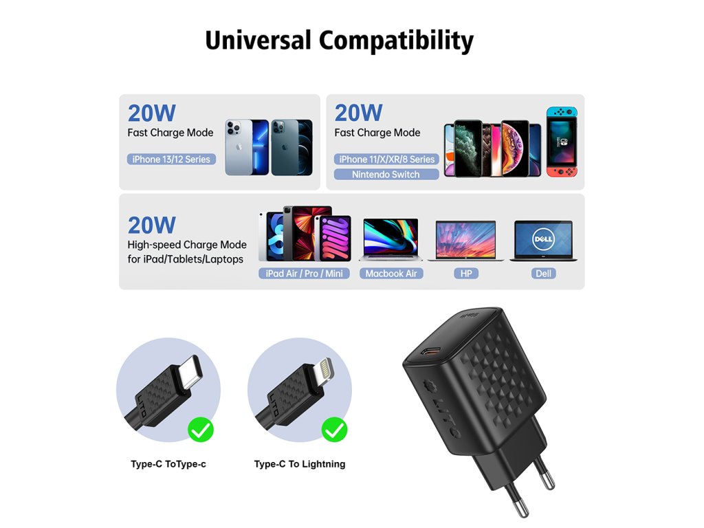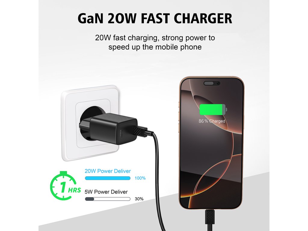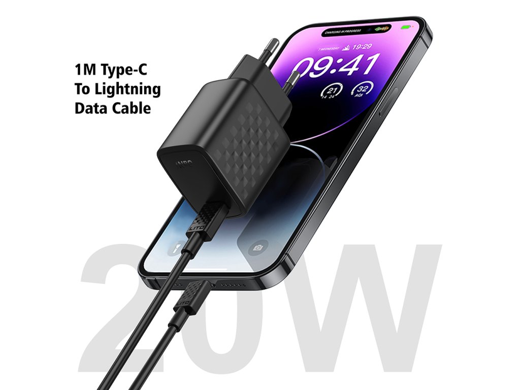 Lito - Wall Charger LC13L sieťová nabíjačka (Lightning kábel v balení, USB-C, PD20W, GaN technológia, nehorľavý PC materiál, EU vidlica) - čierna