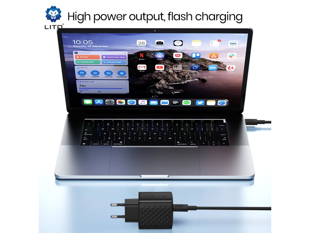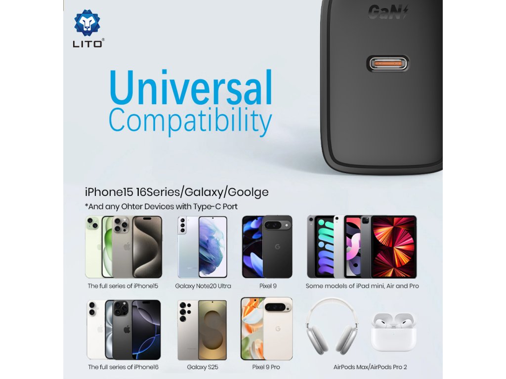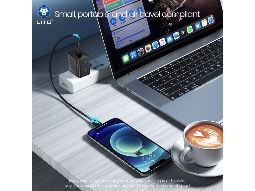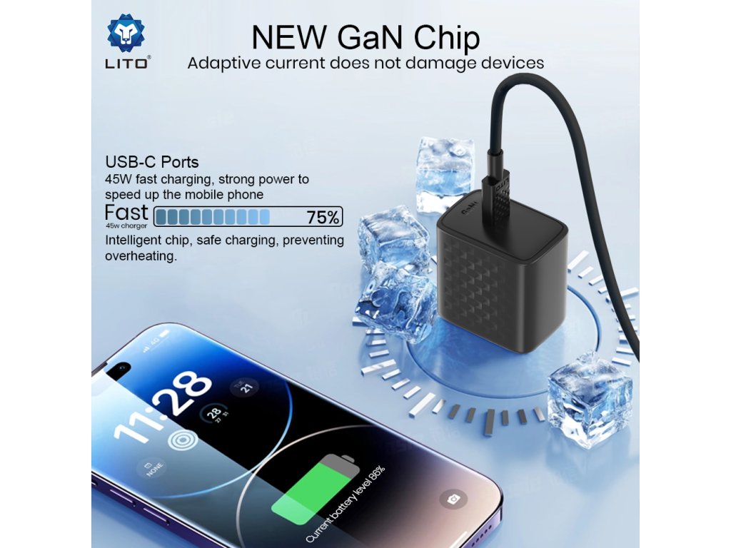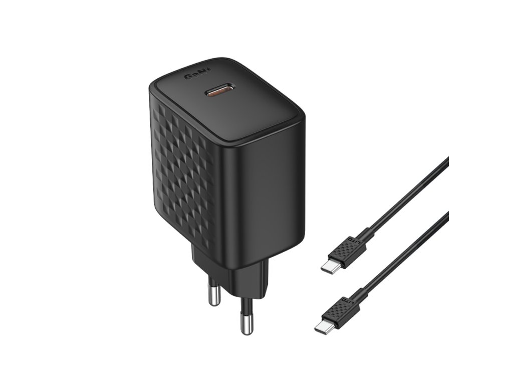 Lito - Wall Charger LC20T sieťová nabíjačka (USB-C kábel v balení, USB-C výstup, PD45W, GaN technológia, nehorľavý PC materiál, EU vidlica) - čierna