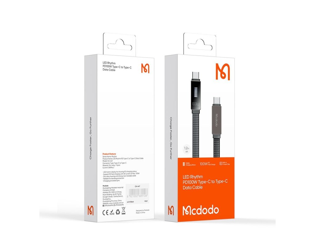 Plochý a odolný kábel Type-C, vyrobený z prémiových materiálov, doplnený intuitívnym LED displejom.⭐Objednajte si práve teraz dátový kábel Mcdodo!