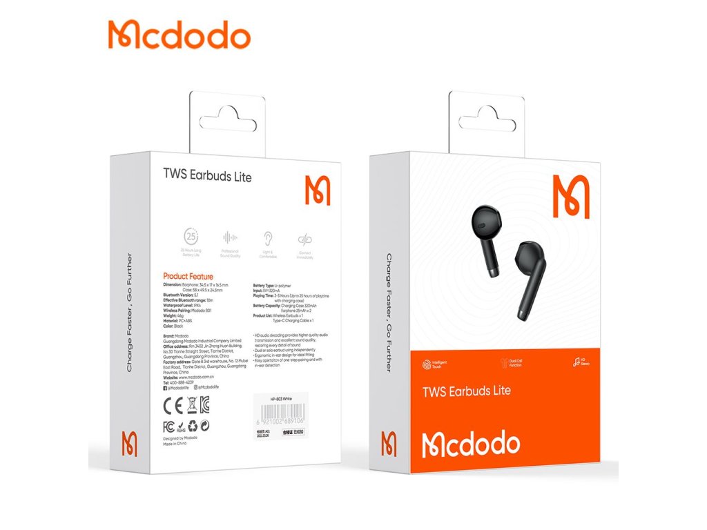 Mcdodo - Wireless Earbuds B01 Series HP-8031 bezdrôtové slúchadlá (Bluetooth 5.1, IPX4, TWS) - čierne