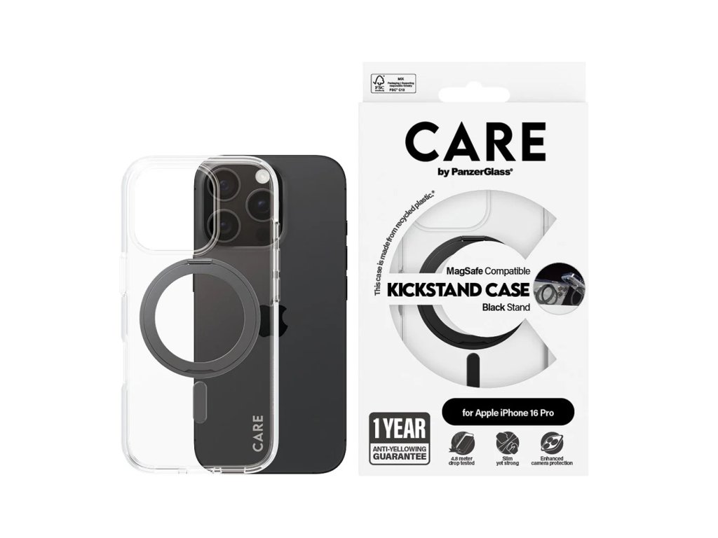 PanzerGlass® - CARE Feature Black Kickstand & MagSafe - iPhone 16 Pro - Clear