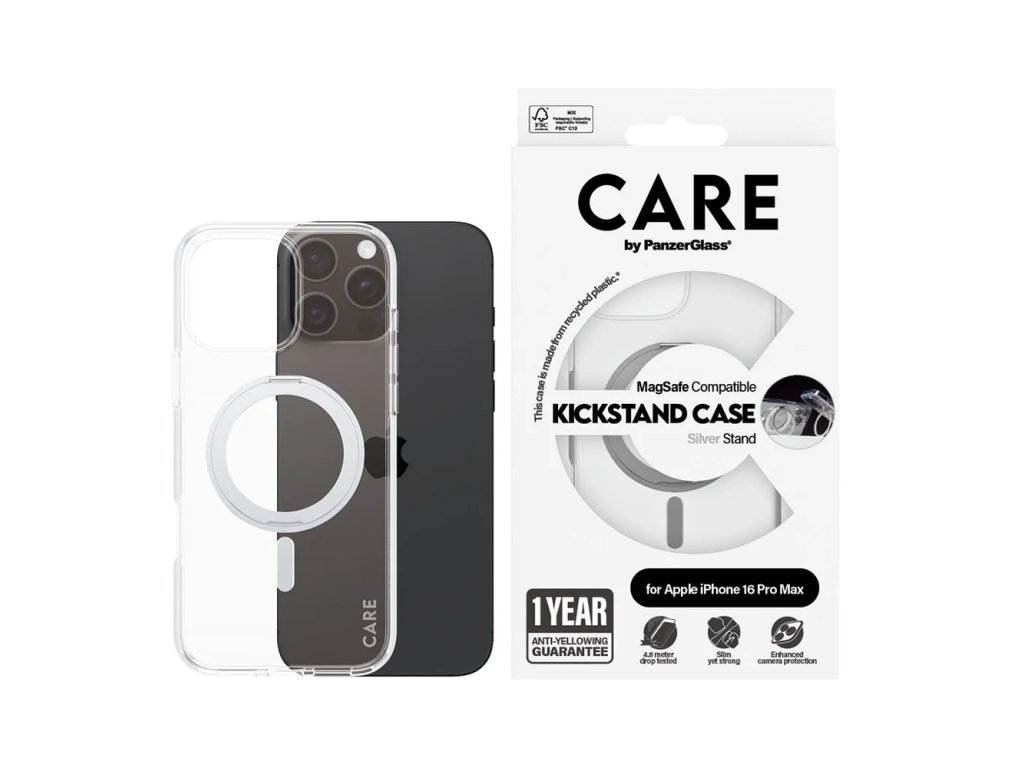 PanzerGlass® - CARE Feature Silver Kickstand & MagSafe - iPhone 16 Pro Max - Clear