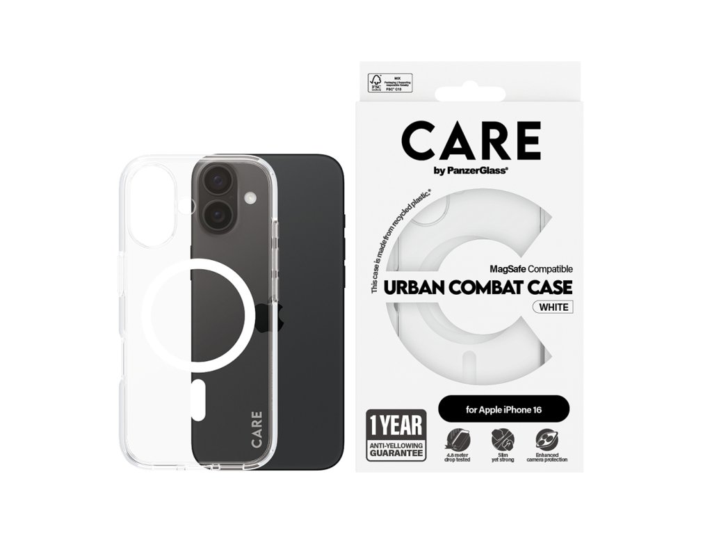 PanzerGlass® - CARE Flagship Urban Combat White MagSafe - iPhone 16 - Clear