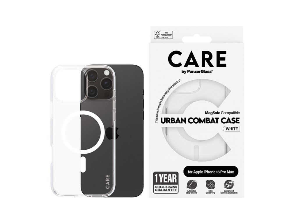 PanzerGlass® - CARE Flagship Urban Combat White MagSafe - iPhone 16 Pro - Clear