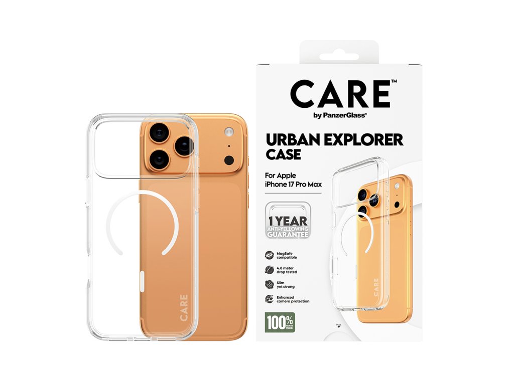 PanzerGlass® - CARE Flagship Urban Explorer White MagSafe - iPhone 17 Pro - Clear