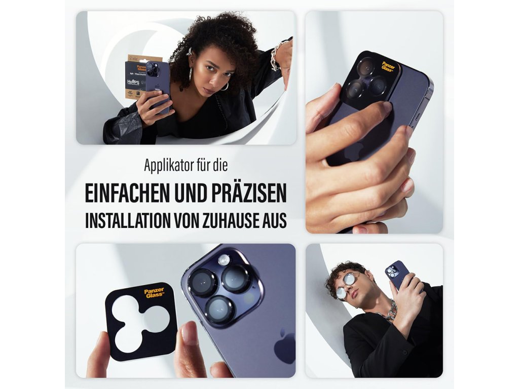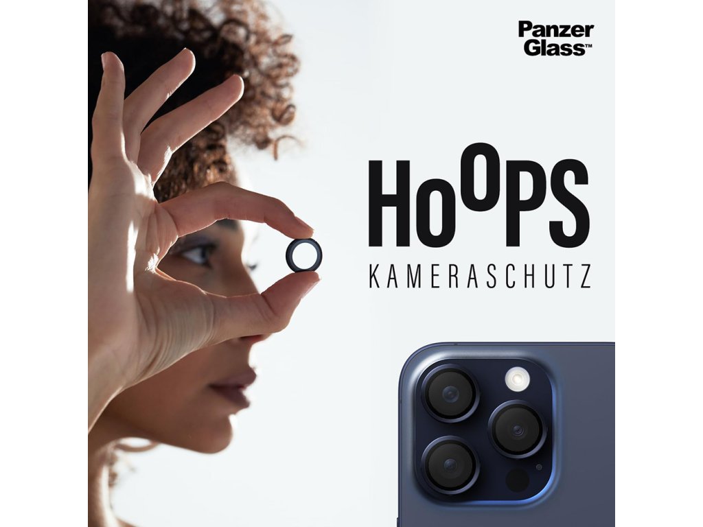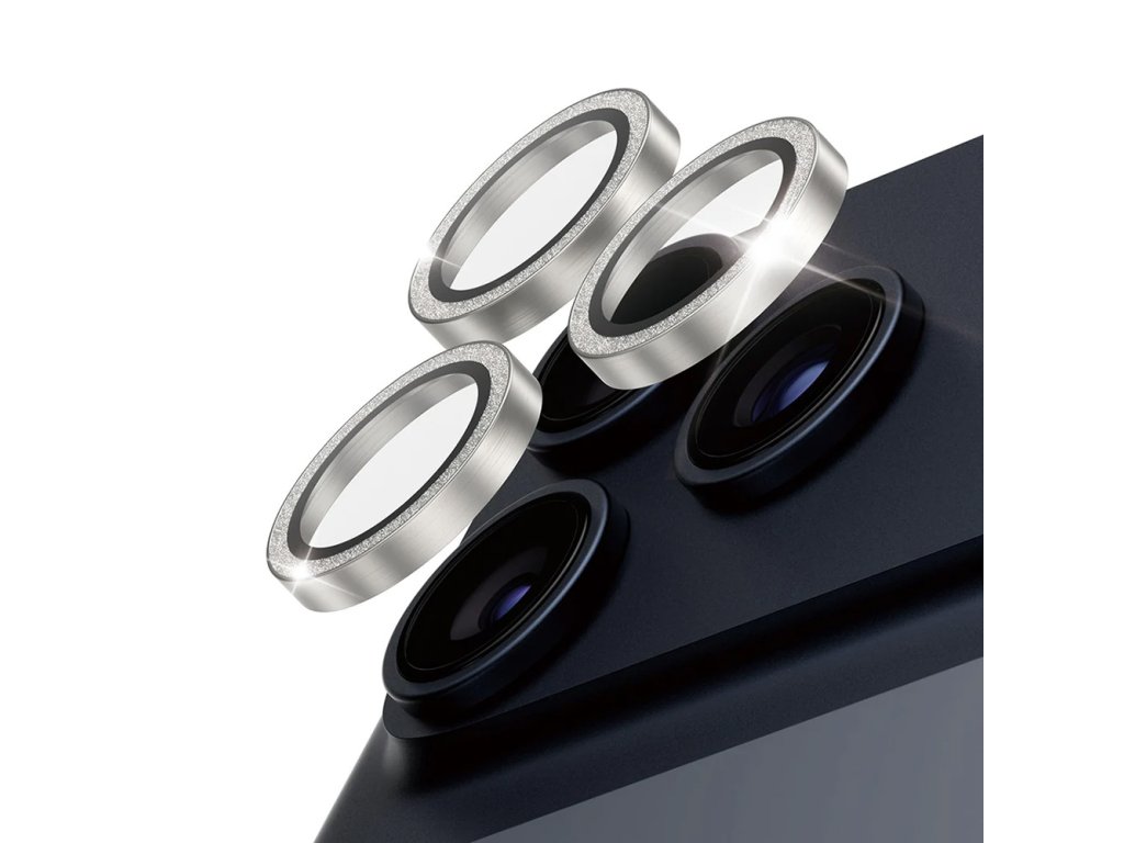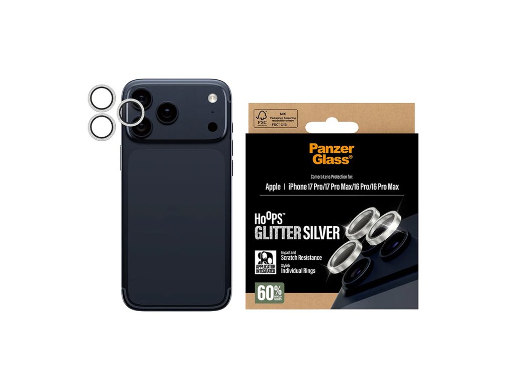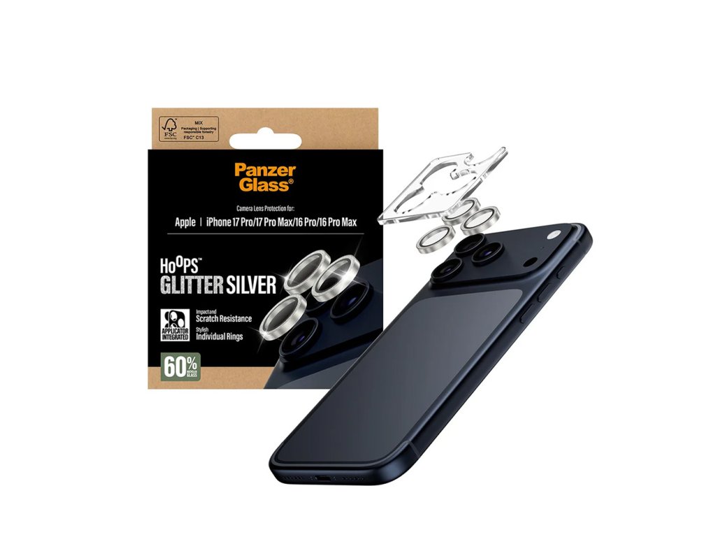 PanzerGlass - Hoops ochrana šošoviek fotoaparátu pre iPhone 17 Pro / iPhone 17 Pro Max / iPhone 16 Pro / iPhone 16 Pro Max - trblietavá strieborná