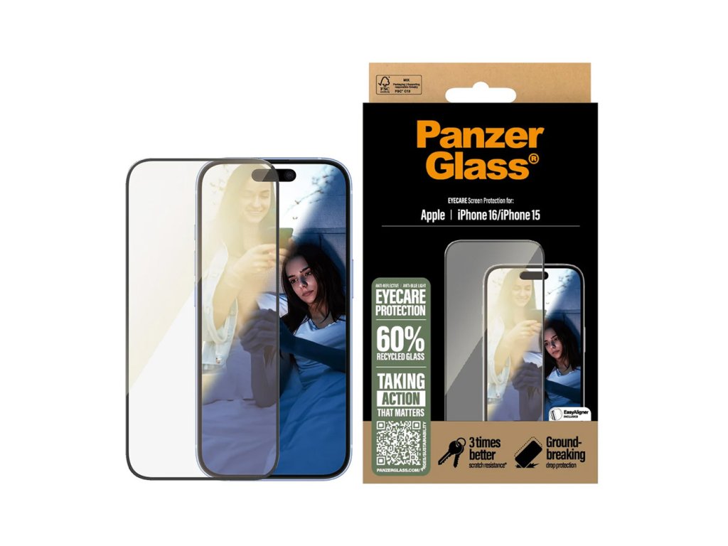 PanzerGlass® - Ultra-Wide Fit EyeCare Screen Protector - iPhone 16 / iPhone 15 - Black