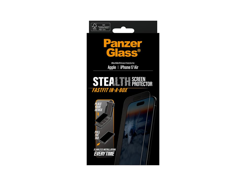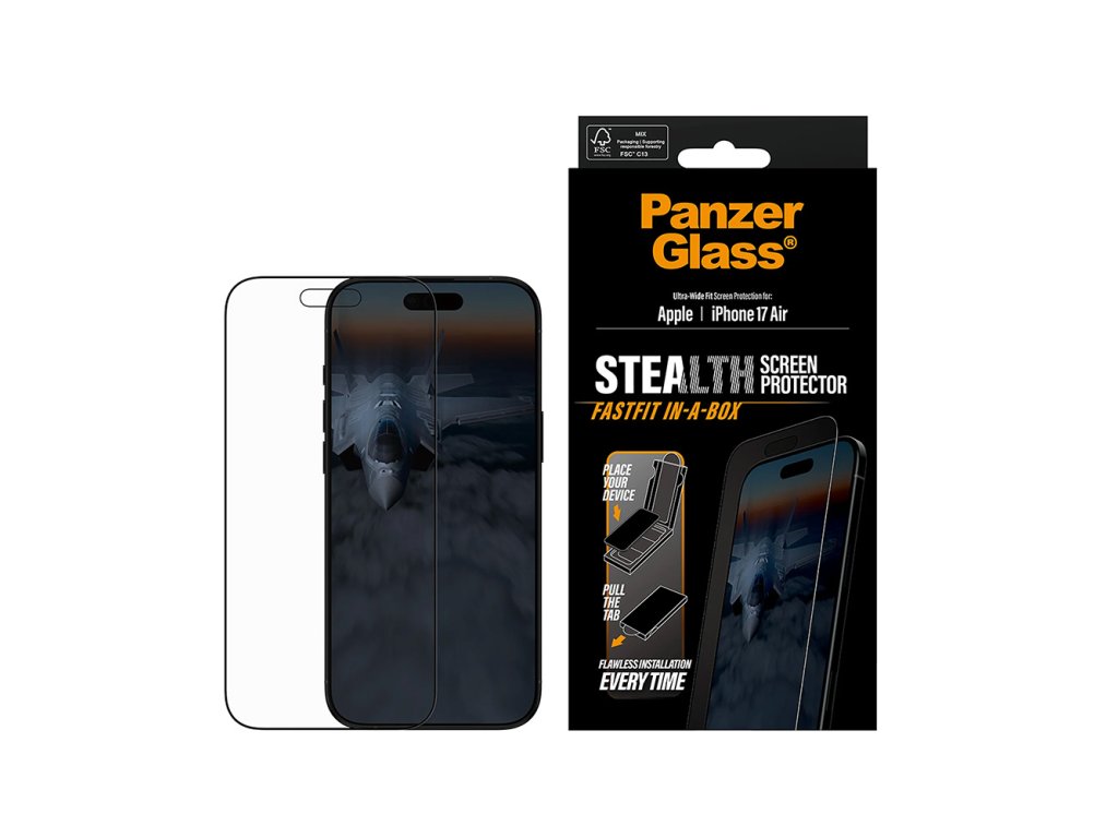 PanzerGlass - Ultra-Wide Fit Stealth Screen Protector FASTFIT IN-A-BOX ochranné sklo pre iPhone 17 Air - čierne