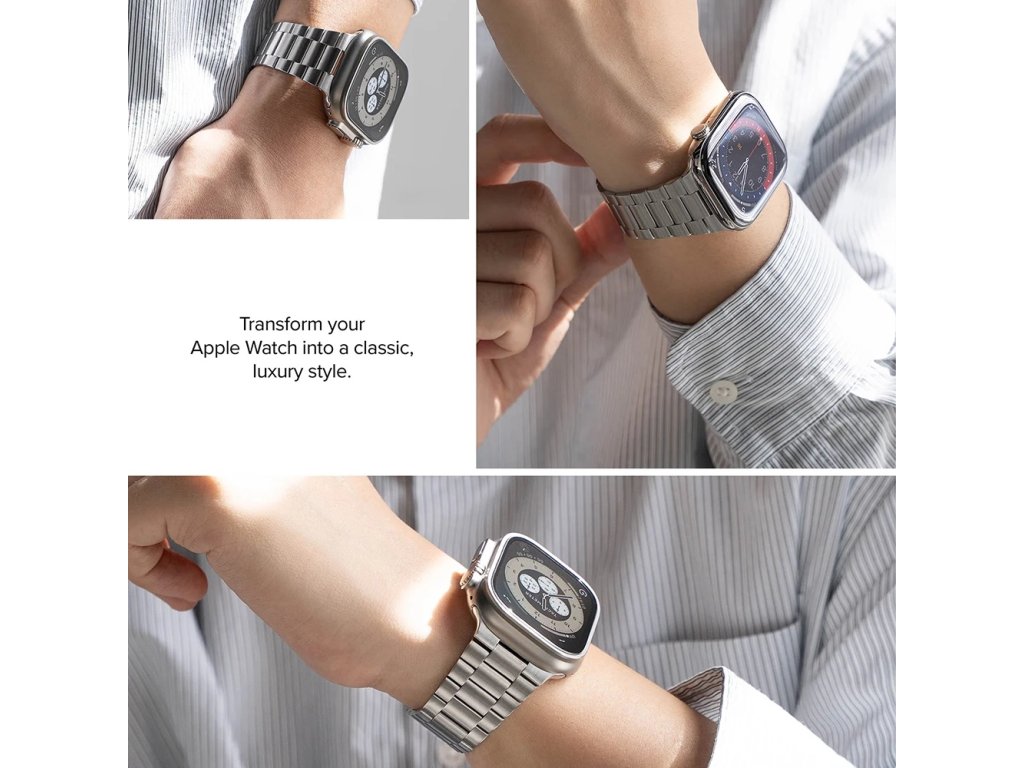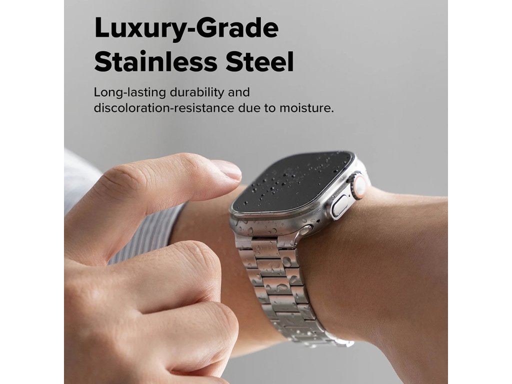 Vyrobený z vysoko kvalitnej nerezovej ocele, tento prémieový remienok Apple Watch 6 44mm spomaľuje prejavy opotrebovania a udržuje svoj prirodzený lesk v priebehu času.