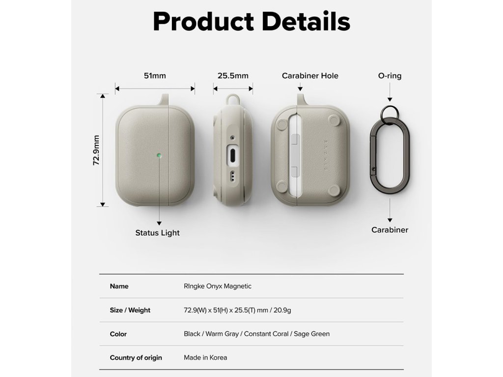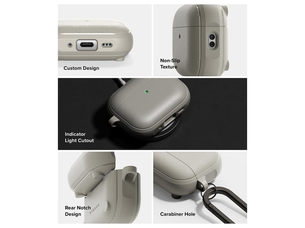 Ringke - Protection Case Onyx Magnetic - for AirPods Pro 3, Non-Slip Texture, Carabiner Hole - Warm Gray