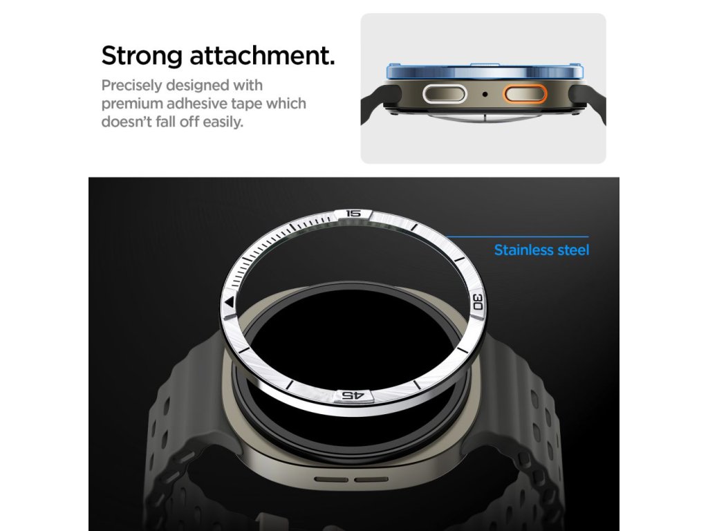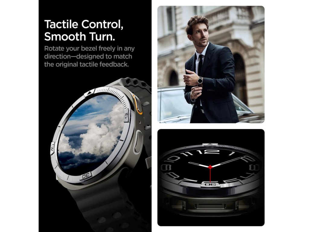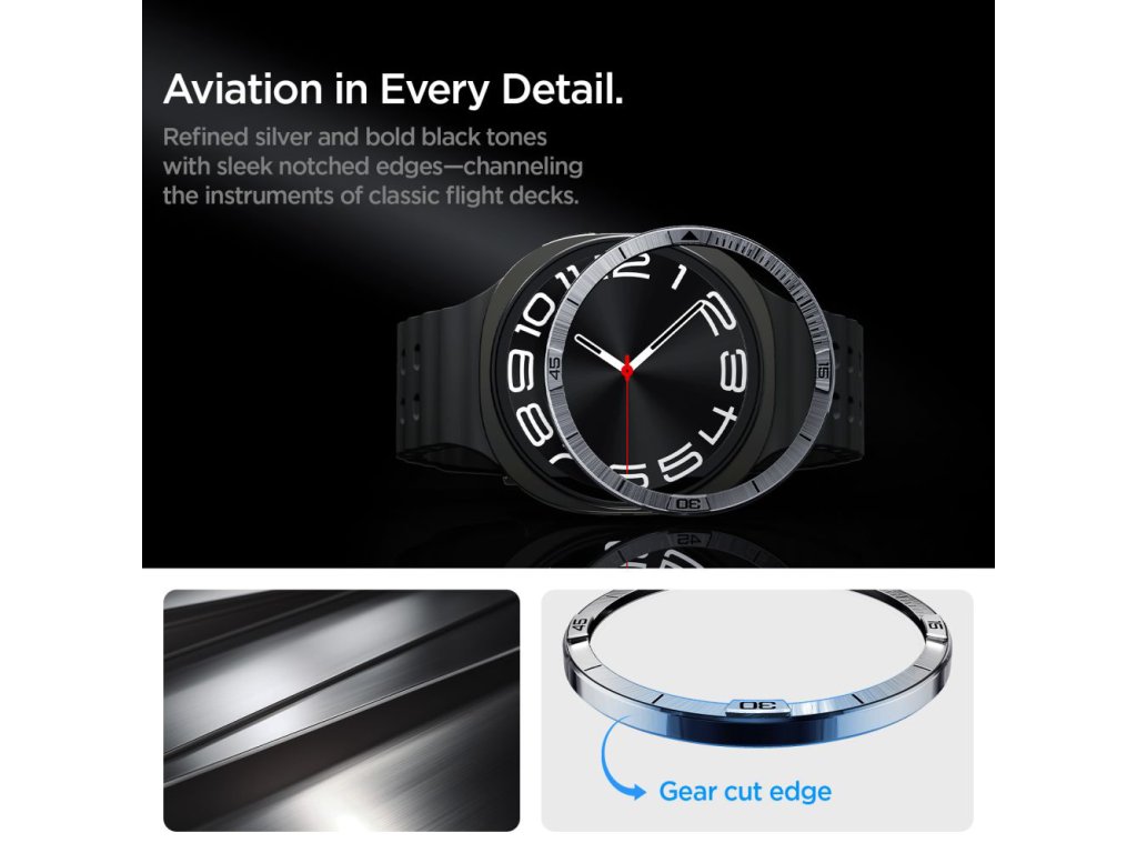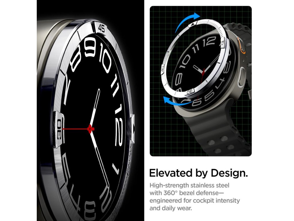 Spigen – Bezel Tune Pilot rámik na Samsung Galaxy Watch8 44mm – nerezová oceľ strieborný