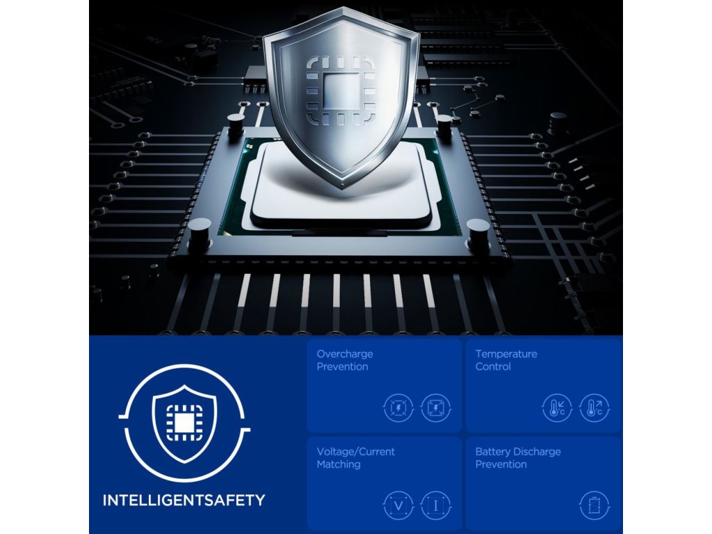 Systém IntelligentSafety zaisťuje kompletnú ochranu pred prebitím, kontrolou teploty a ochranou batérie pre bezpečné každodenné použitie.