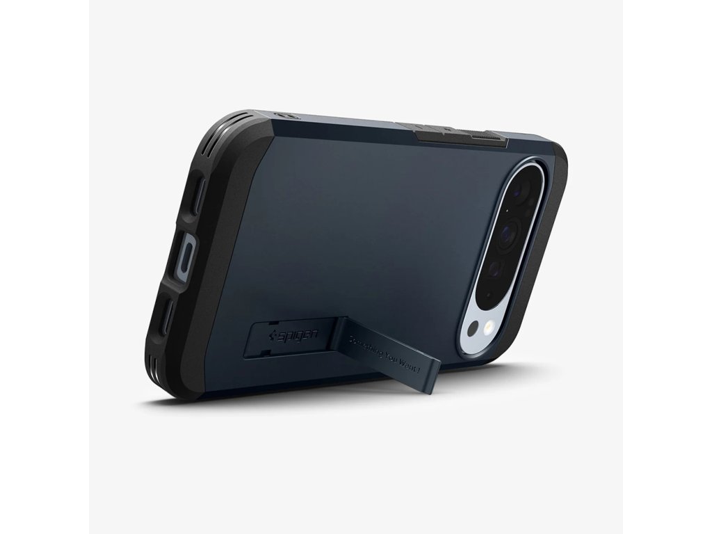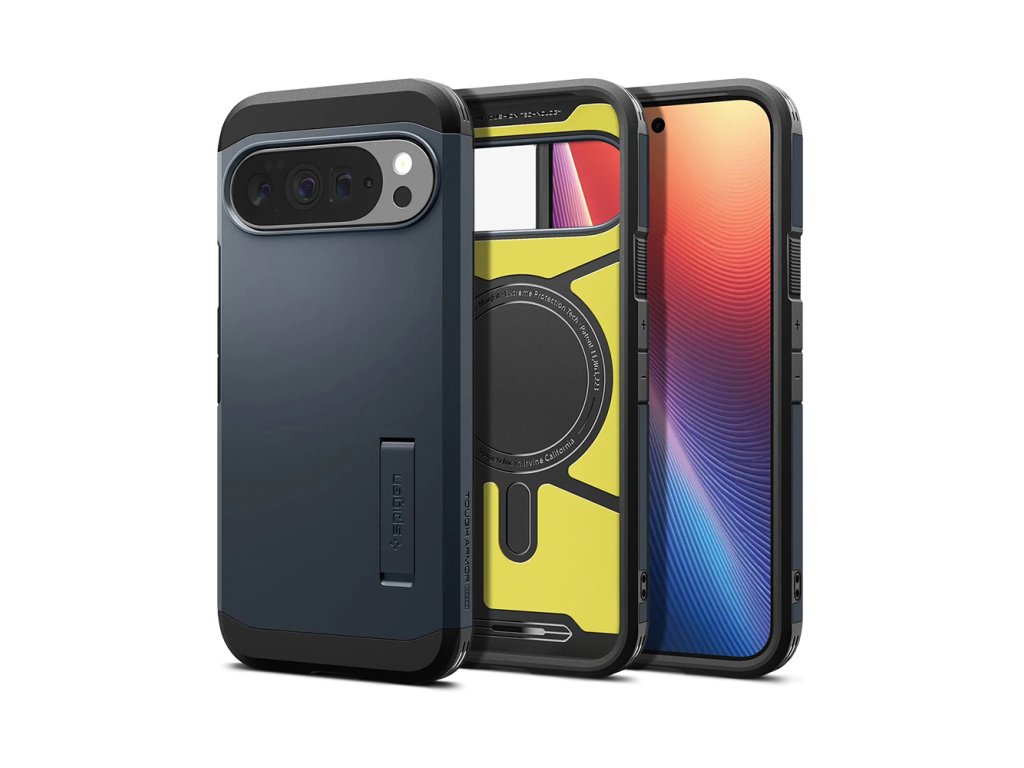 Puzdro Spigen Tough Armor pre Google Pixel 10 Pro XL, vyrobené z TPU gélu a čierneho polykarbonátu, zabraňuje náhodnému pošmyknutiu a odoláva opotrebeniu.