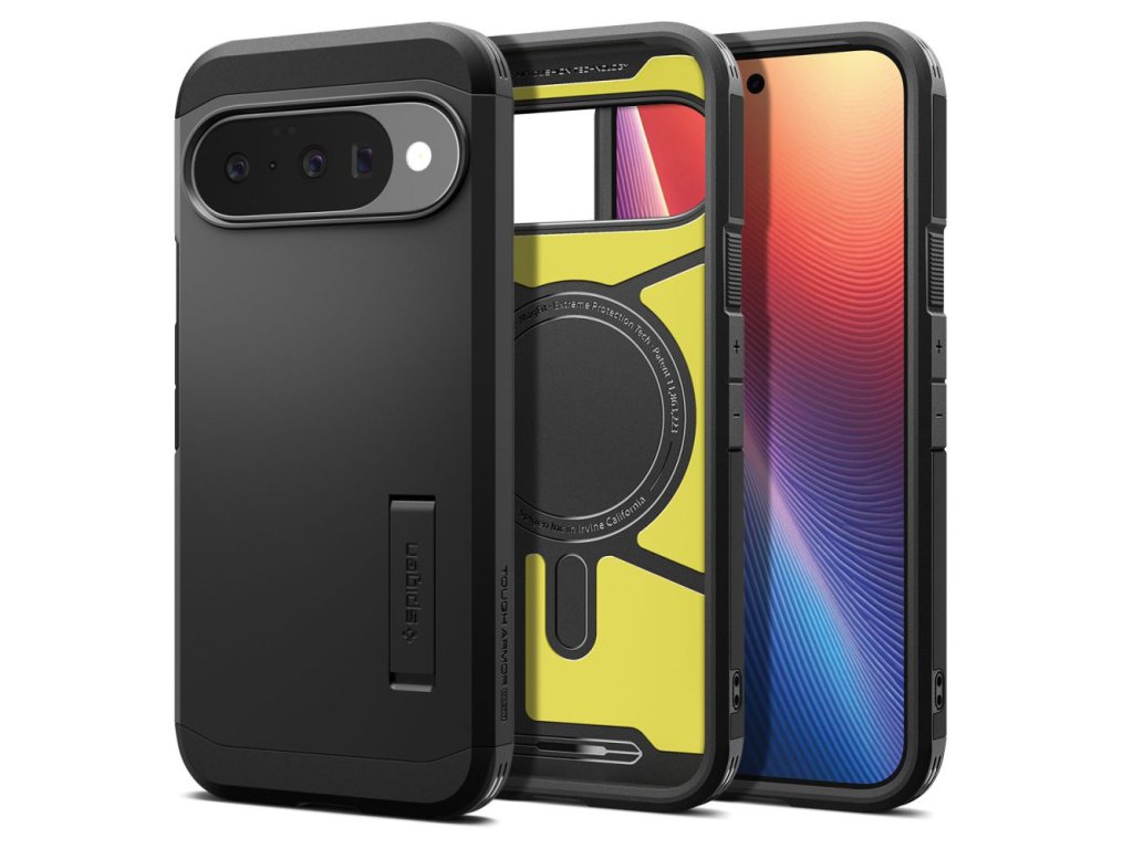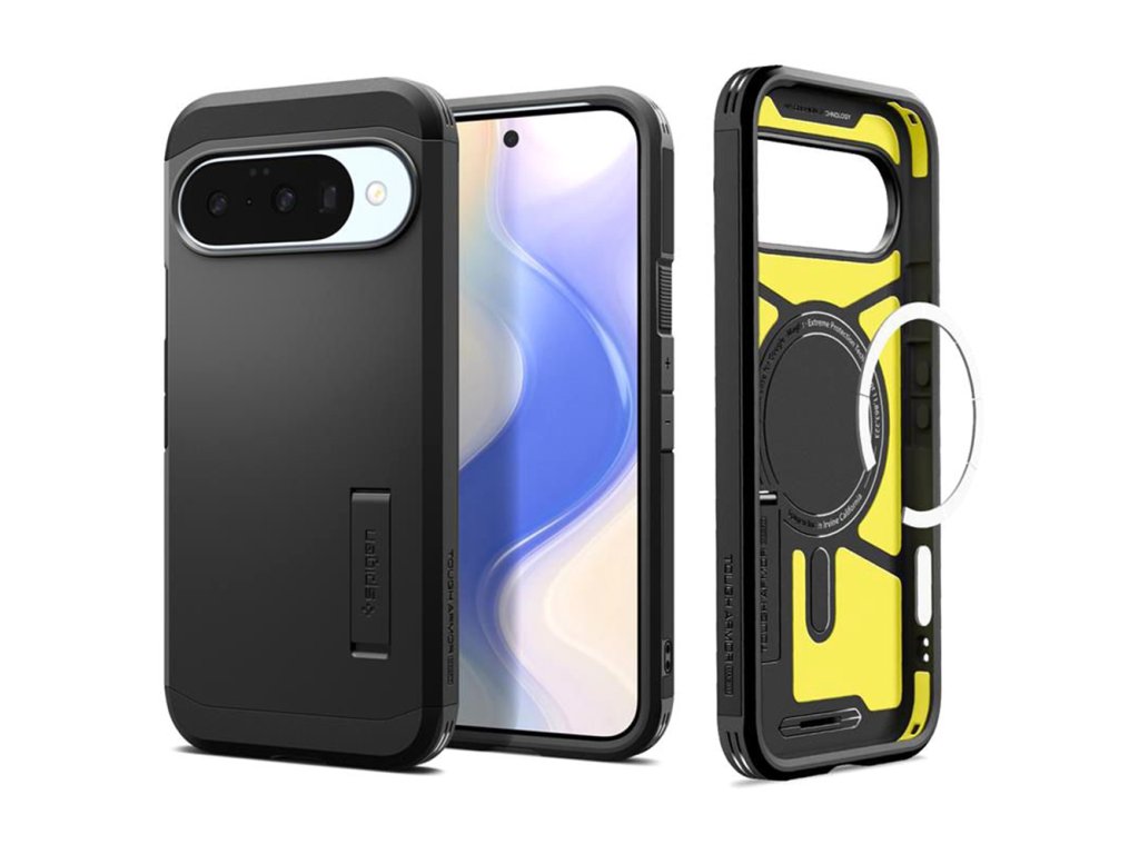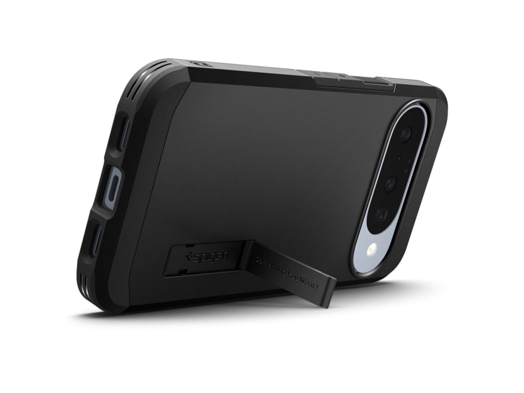 Puzdro Spigen Tough Armor pre Google Pixel 10, vyrobené z TPU gélu a čierneho polykarbonátu, zabraňuje náhodnému pošmyknutiu a je odolné proti opotrebovaniu.