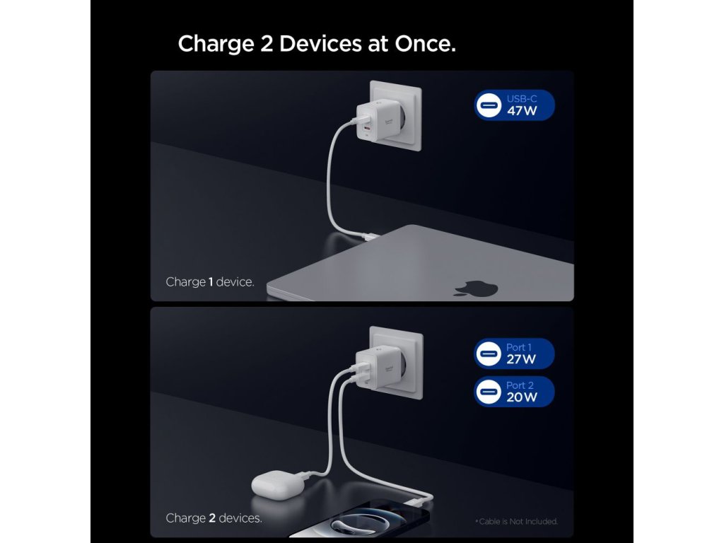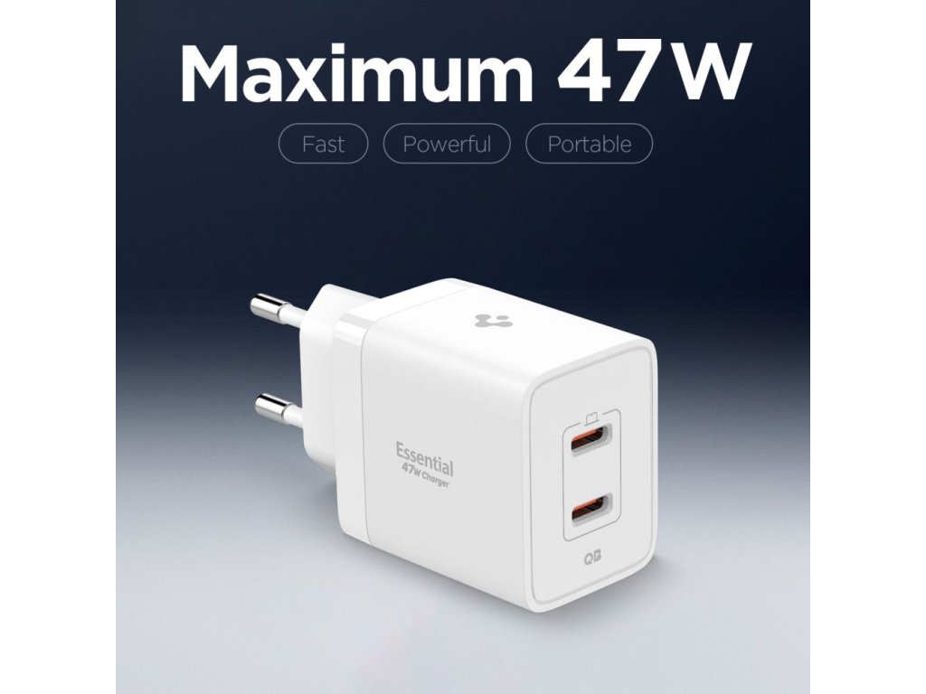 Spigen – Wall Charger Essential sieťová nabíjačka 2× USB-C 47W rýchle nabíjanie Quantum Boost – biela