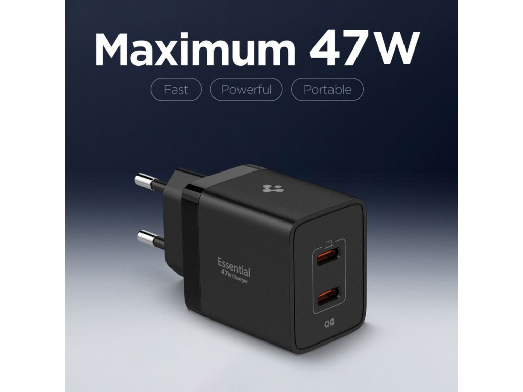 Spigen – Wall Charger Essential sieťová nabíjačka 2× USB-C 47W rýchle nabíjanie Quantum Boost – čierna