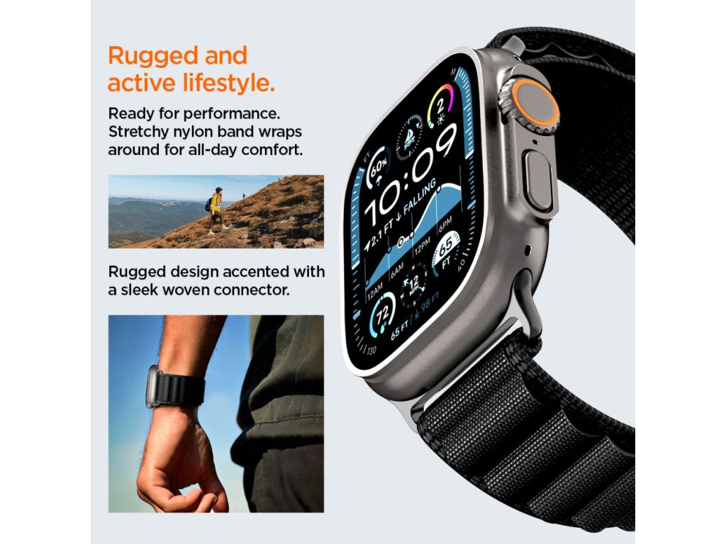 Spigen – WBF1 remienok na Apple Watch 6 / 7 / 8 / 9 / 10 / SE / SE 2 / Ultra / Ultra 2 (44/45/46/49mm) – čierny