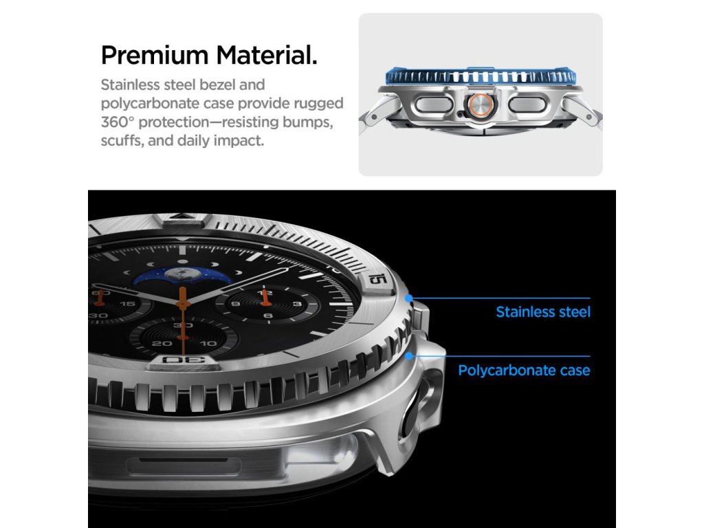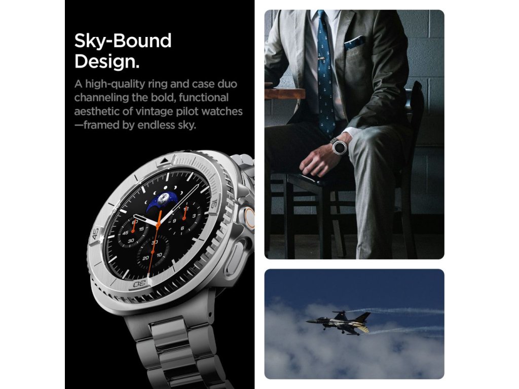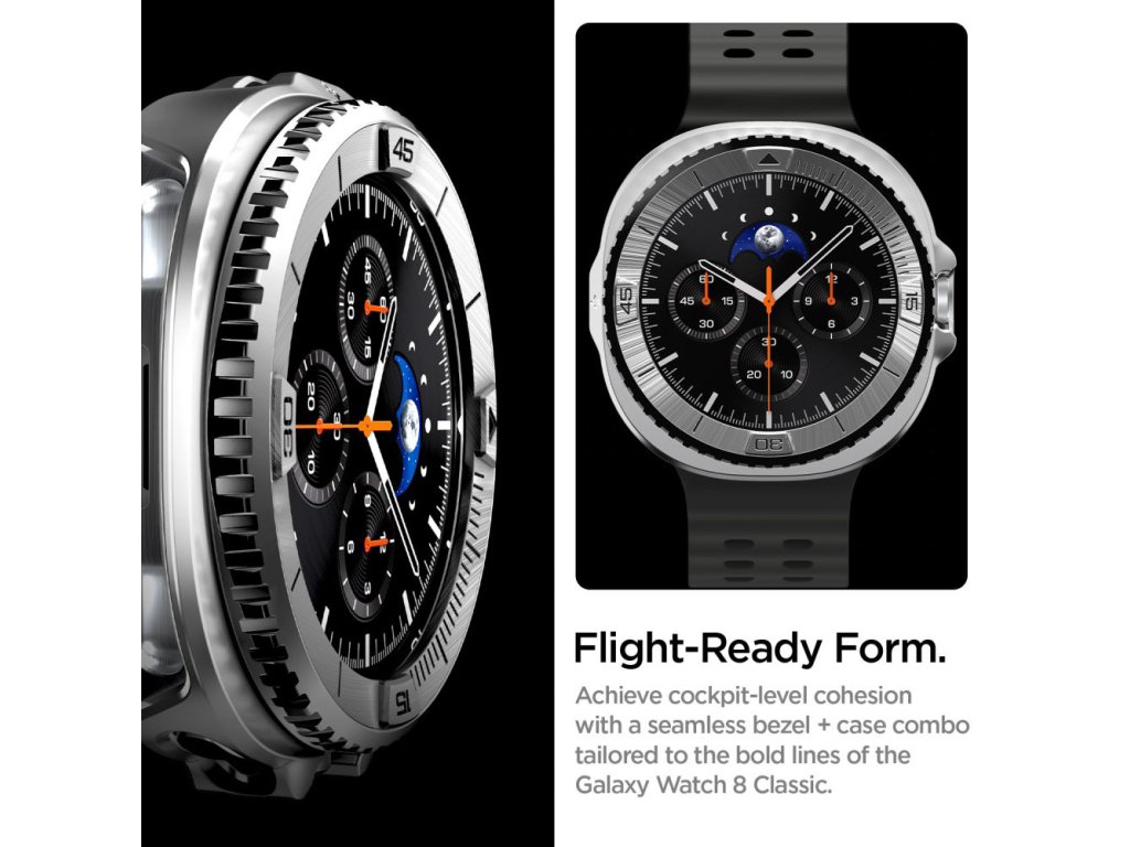 Spigen - Bezel Tune Pro Pilot luneta (otočný rámček, nerezová oceľ) pre Samsung Galaxy Watch8 Classic - strieborná