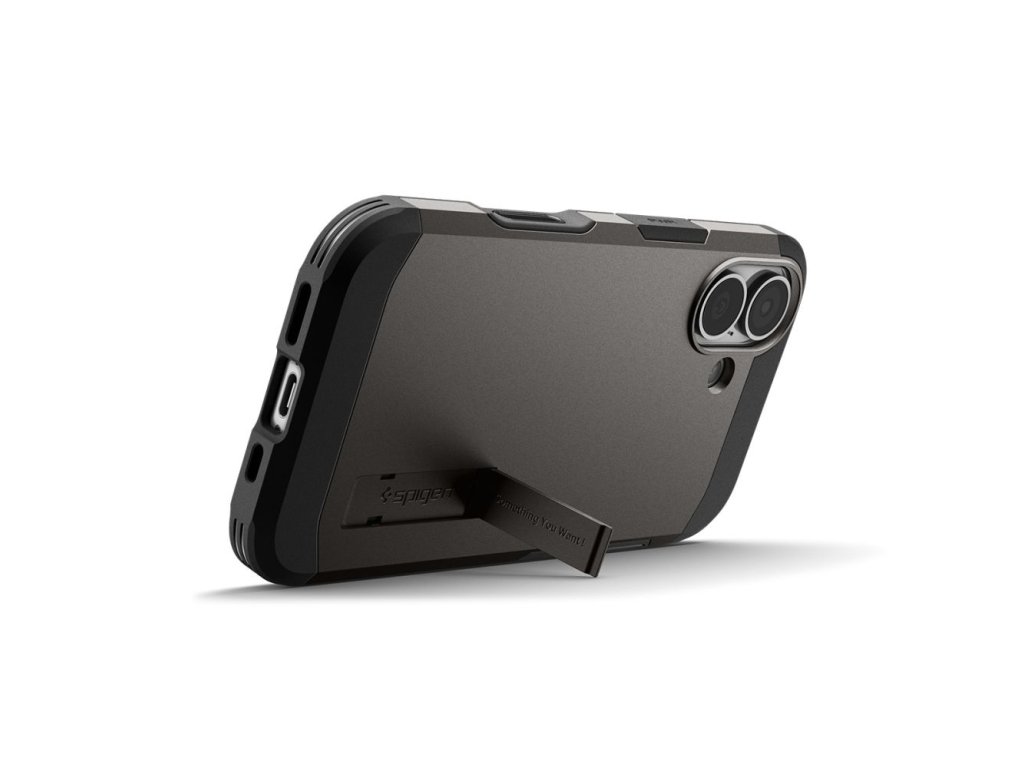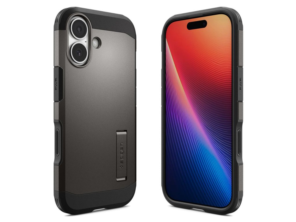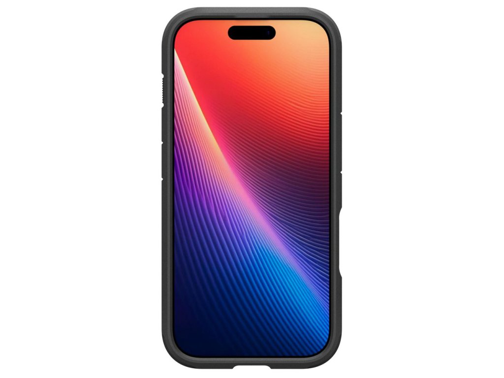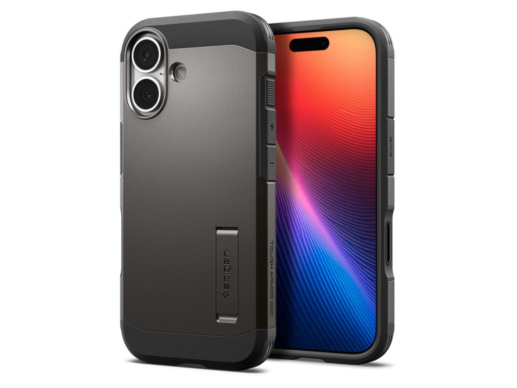 Obal Spigen Tough Armor pre iPhone 17, vyrobený z TPU gélu a čierneho polykarbonátu, zabraňuje náhodnému šmyku a je odolný voči opotrebovaniu.