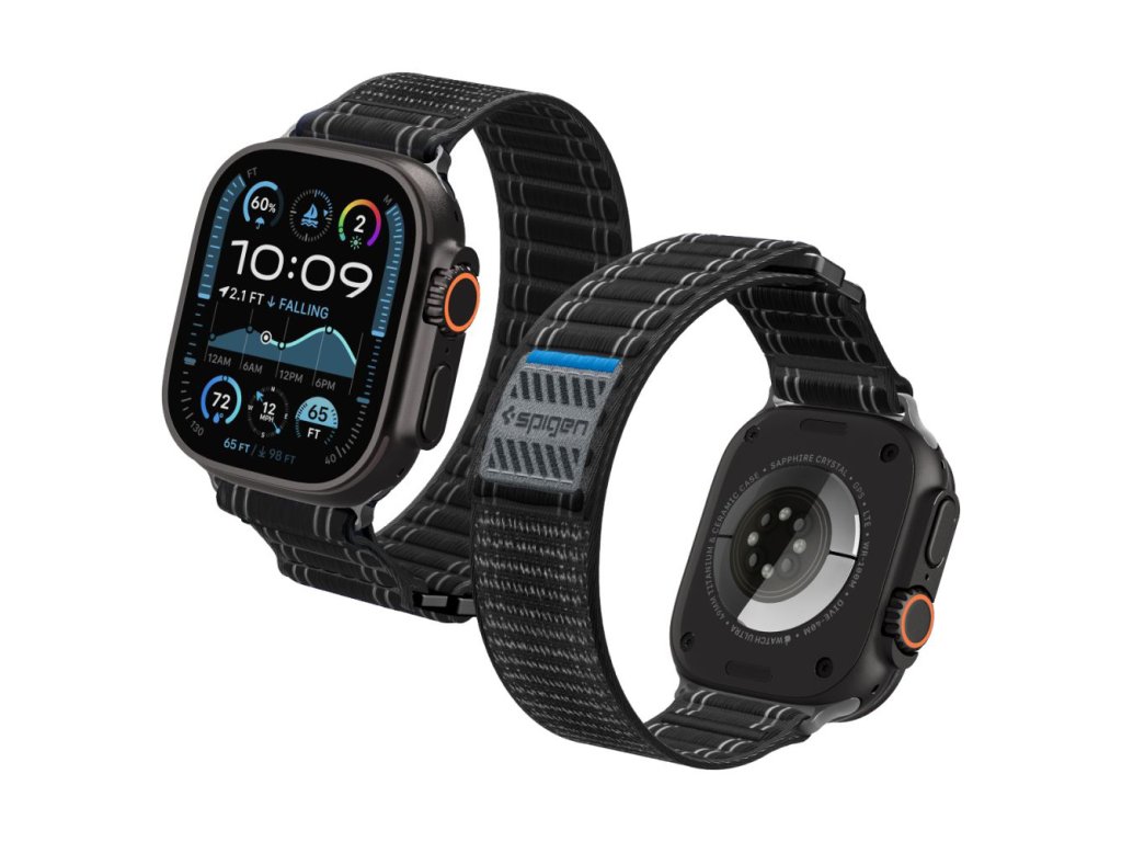 Spigen - Watchband WBF0 remienok pre Apple Watch 8 / 9 / 10 / SE / SE 2 / Ultra / Ultra 2 (44/45/46/49mm) - čierny