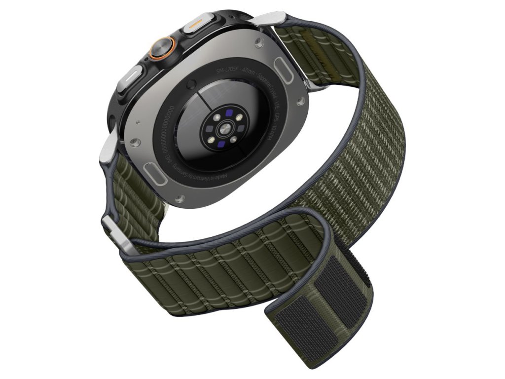Opasok Samsung Galaxy Watch Ultra 47mm je vyrobený z odolného materiálu, ktorý výborne odoláva každodennému opotrebovaniu. Prémiový materiál si udržuje svoj tvar a vzhľad v priebehu času, ponúkajúc vyváženú kombináciu odolnosti, funkčnosti a štýlu.